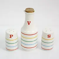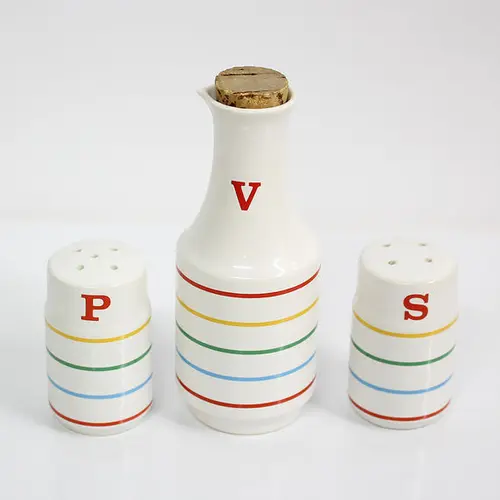 70s Vinegar Dispenser Salt and Pepper Shakers 3pc Set. Excellent condition.