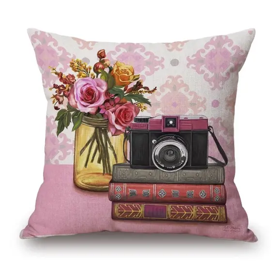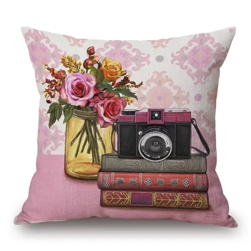 Vintage style old camera print, Decorative pillow, 45 cm x 45 cm, cotton, machine washable.