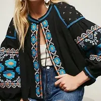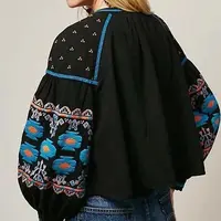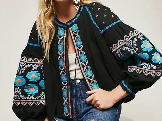 • Boho embroidered wide sleeve blouse in black and blue