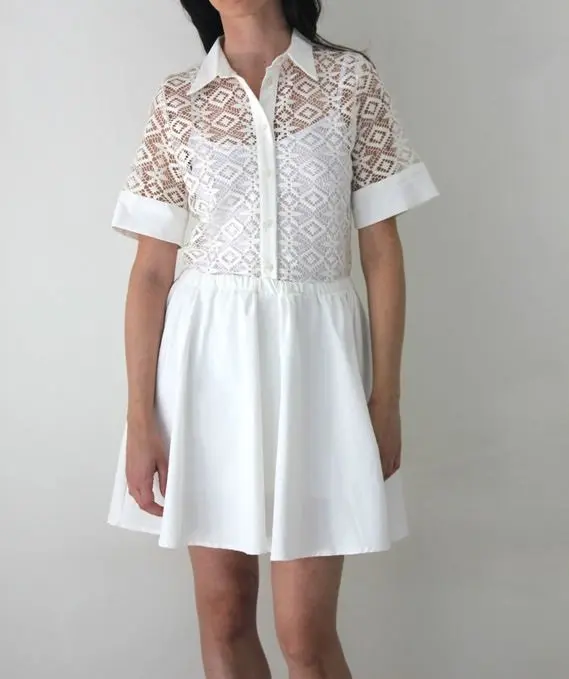 Short sleeve, sheer, mini Bridal dress, OOAK US Size 8.