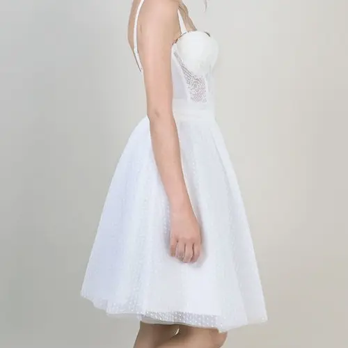 This sweetheart bridal dress is perfect for the alternative bride, or as a reception dress. Chiffon, tulle, US size 10. Can be made in different sizes.