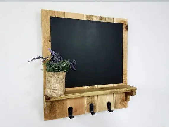 Wall Chalk board Shelf Rack, made of repurposed wood, great rustic addition to any home, OOAK, handmade.