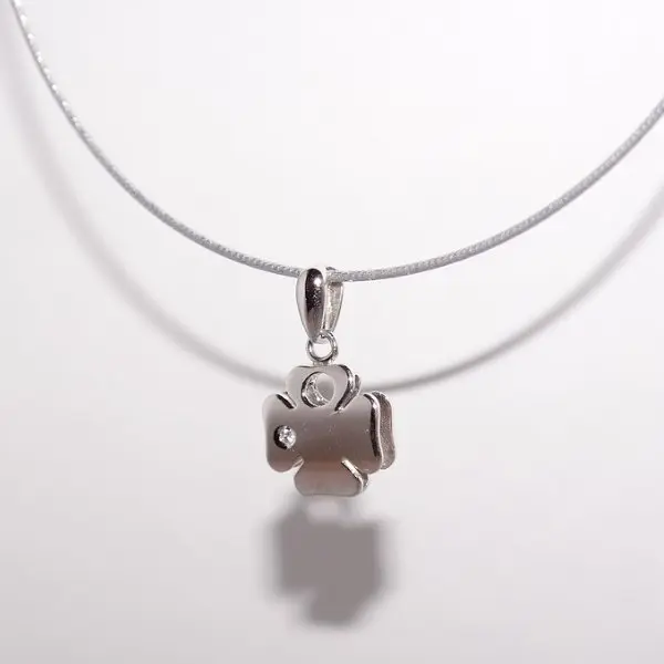 This unisex four leaf clover pendant, for good luck, is made of Sterling Silver, featuring a small lab created diamond, I have designed it for myself, used it a few times, and now offering it for sale. Great condition.