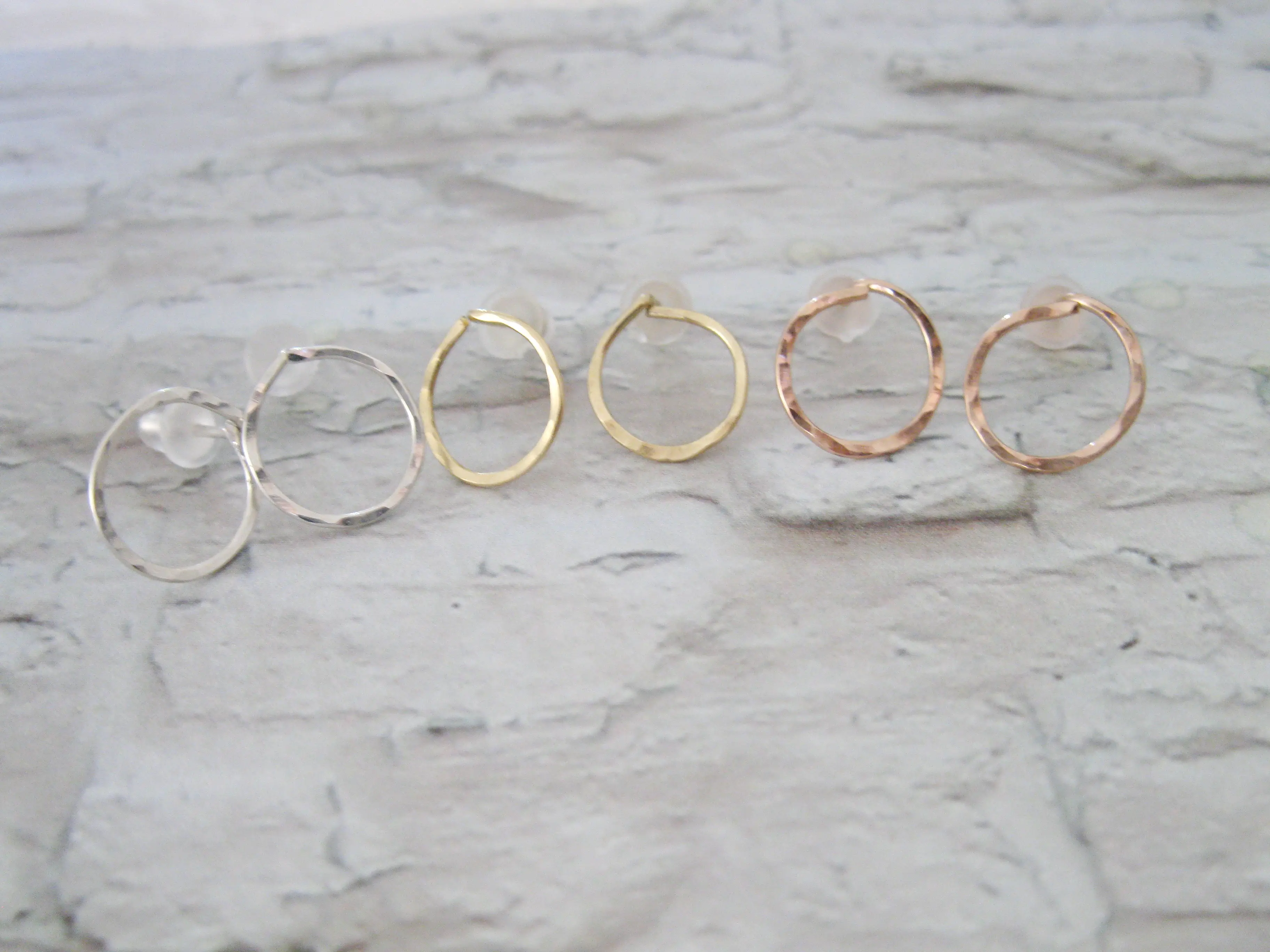 Super cute minimalist hammered Gold filled circle studs earrings.