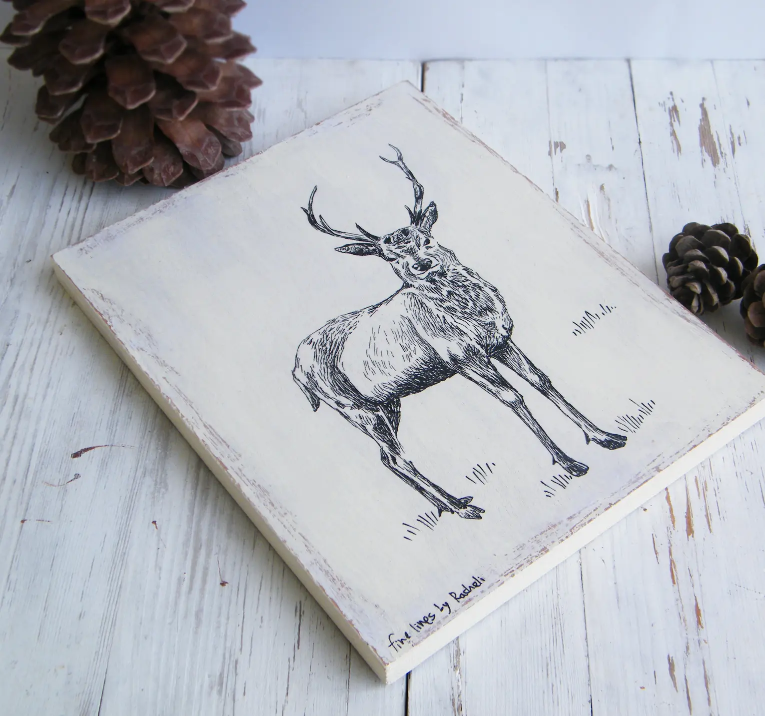 This wonderful nature print is handmade with love: the original illustration is transferred on to a hand painted and sanded wood sign to create unique black and white art work.