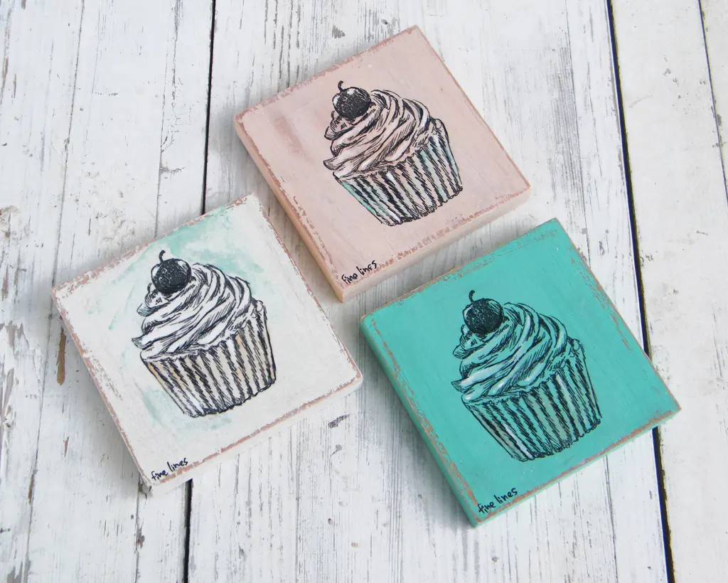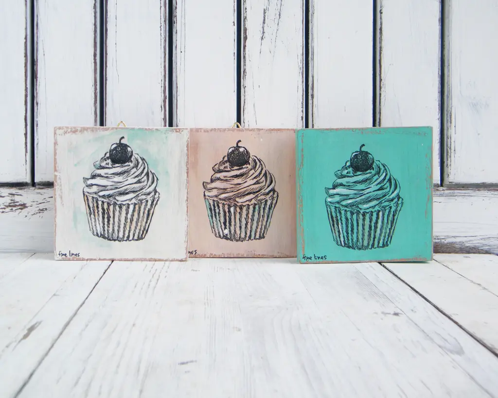 Rustic Kitchen Decor, Miniature Paintings, Set of 3 Cupcakes art, patisserie wall art, Kitchen Wall Art, C