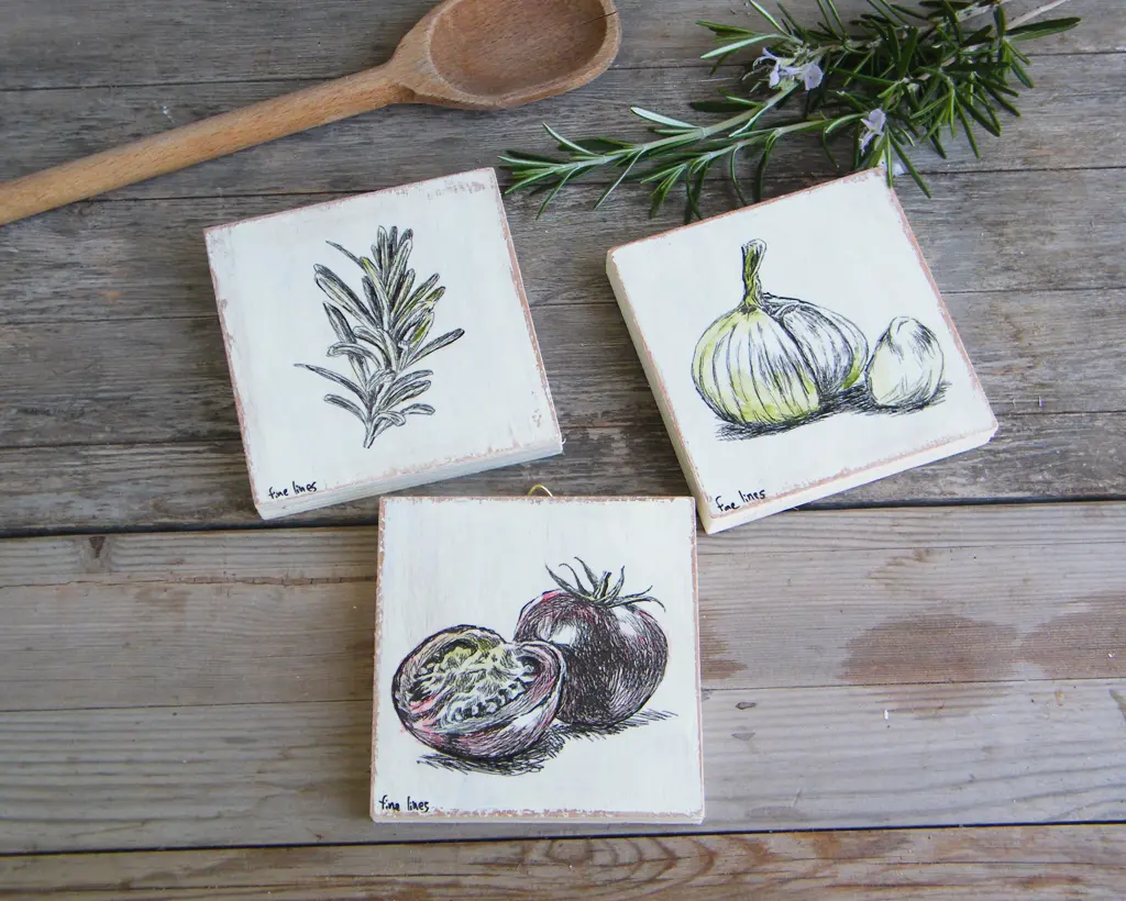 Food Art, Miniature Paintings, Set of 3, Rustic Kitchen Decor, Kitchen Wall Art, Country Chick, Farmhouse Decor