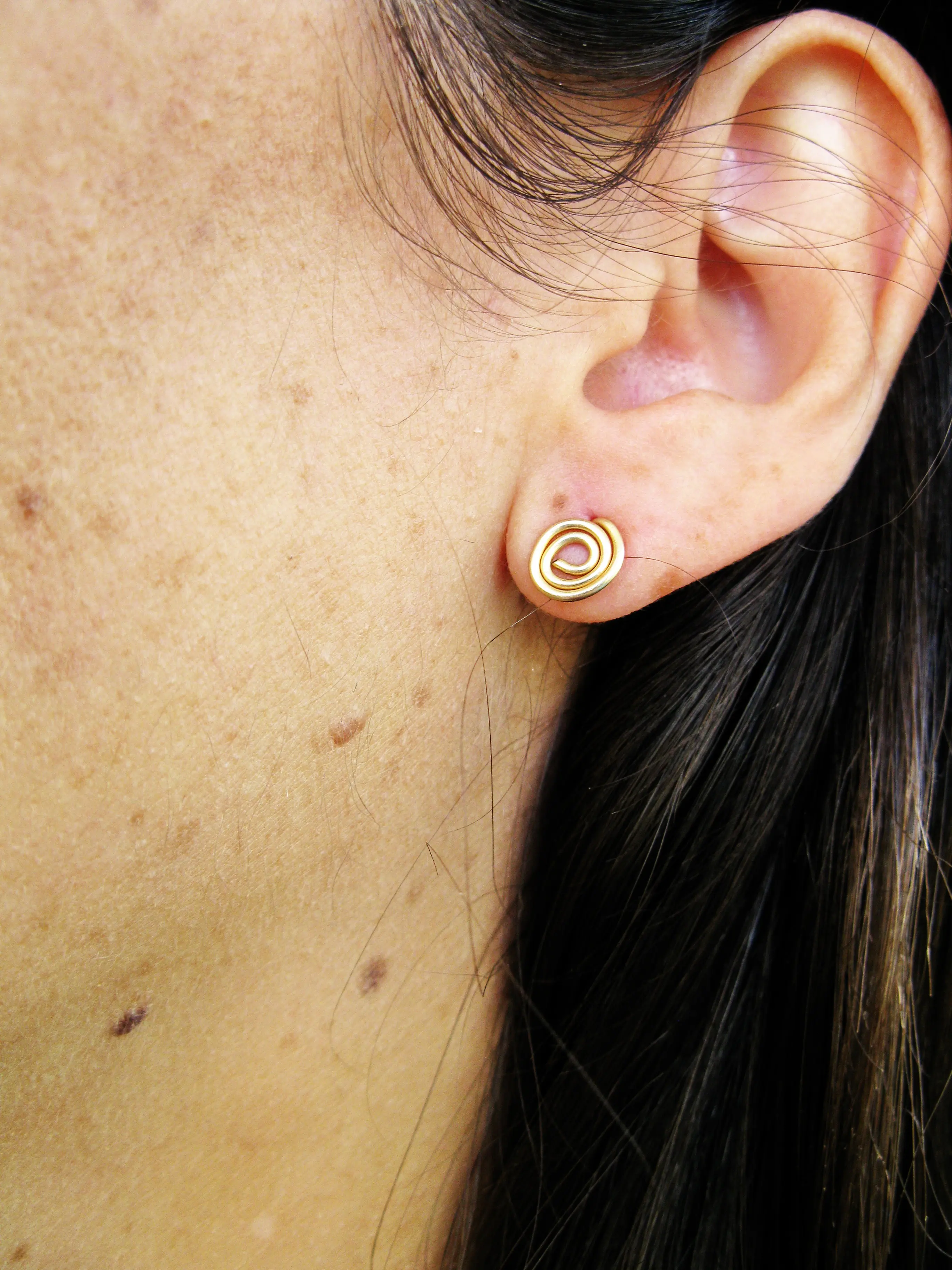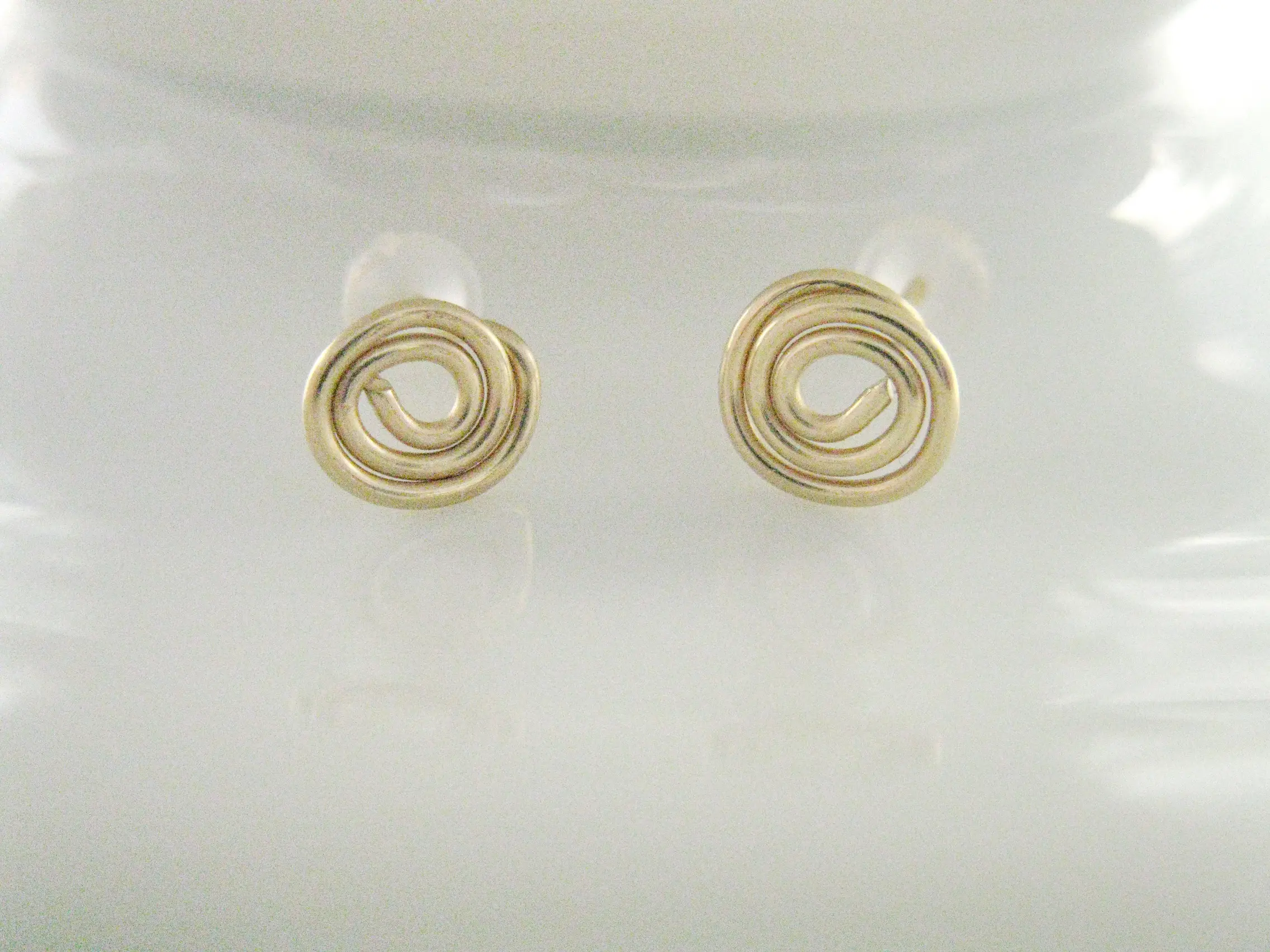 Gold Spiral Earrings, Stud Spiral Earrings, Gold Post Earrings, Gold Filled Earrings, Circle Earrings,