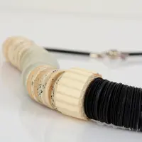 This light weight and elegant necklace is threaded in a 21.6 inches (55 cm) leather cord with a magnetic clasp.