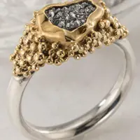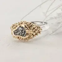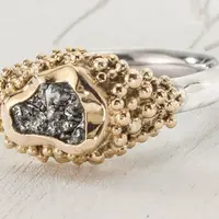 A 22k gold granulation decorates this beautiful 1.57 ct rough diamond, set in a 24k solid gold bezel.