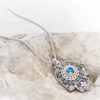 Evil Eye Necklace, Hamsa Hand, Hand Necklace, Hamsa Necklace, Hamsa Charm, Gold Necklace, Hamsa Jewelry, Evil Eye Gifts, Blue Topaz Necklace.