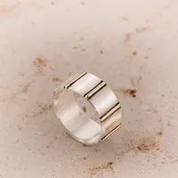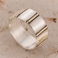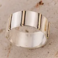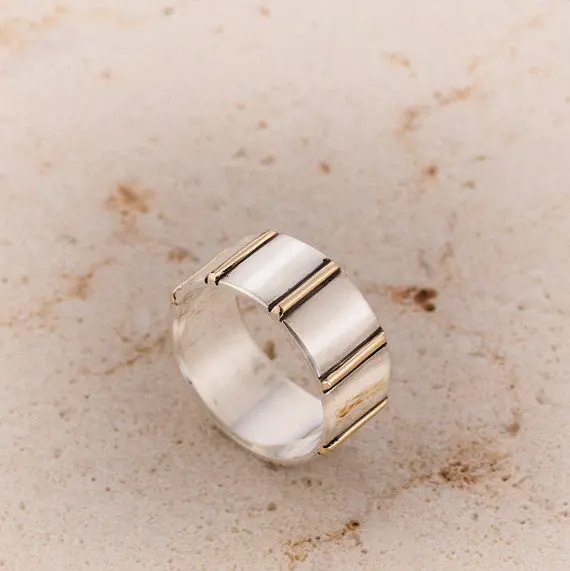 Simplicity and beauty characterize this unisex wedding band ring. A combination of 14k yellow gold wires and sterling silver create this unique wide ring that is simple yet very striking.