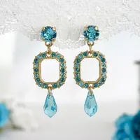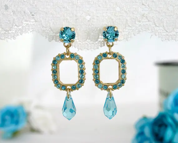 Mother of the bride earrings, Bridal party earrings, Blue crystal earrings, Blue turquoise earrings, blue and gold earrings