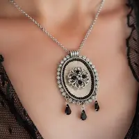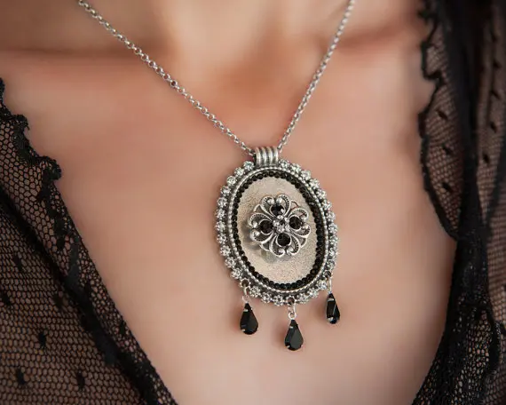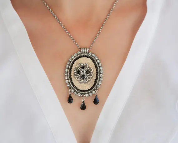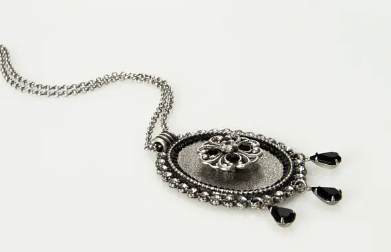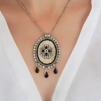 Gorgeous Mother of the bride black necklace made of oval pendant combined with black & transparent Crystals, that give the pendant its unique and unforgettable look.