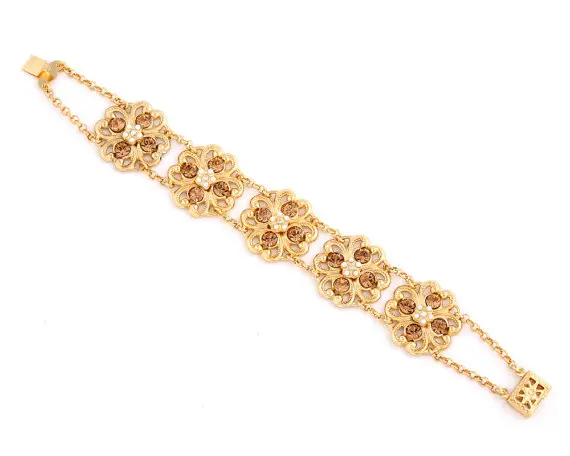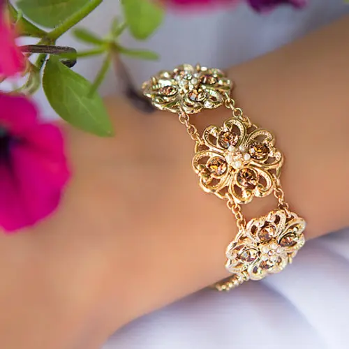 Blush bracelet which I have name Francis is made from 24k gold plated and set with champagne Swarovski crystals and crystal pearls.
