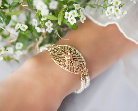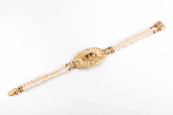 Stunning romantic gold and pearl bracelet that will give you a special presence on every special occasion.