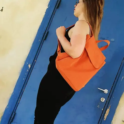 Rucksack woman orange backpack laptop, women vegan backpack, carryall backpack purse, City Backpack, Canvas Rucksack, College Backpack Women
