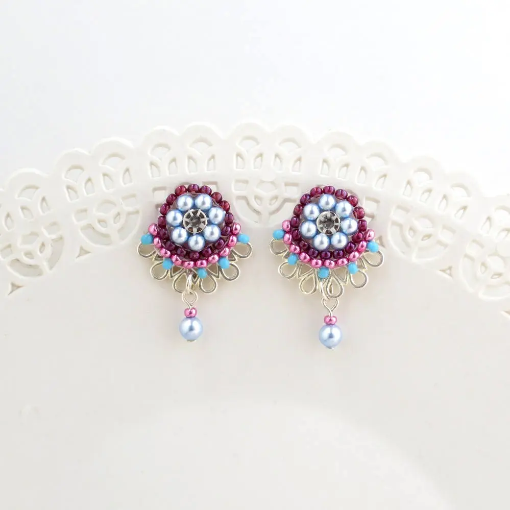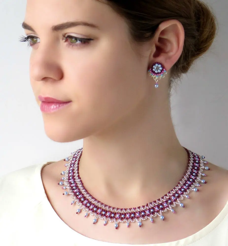 Necklace and earring set, Silver stud earrings, Unique jewelry women, Tribal necklace, Unique necklaces for women, Seed bead necklace