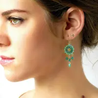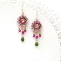 Green and pink bright earrings, Boho colorful chandelier earring, Gift for wife, Cute beaded earring, Fashion jewelry