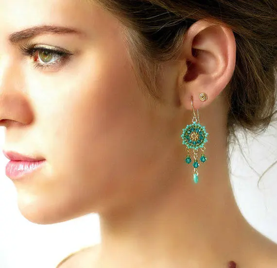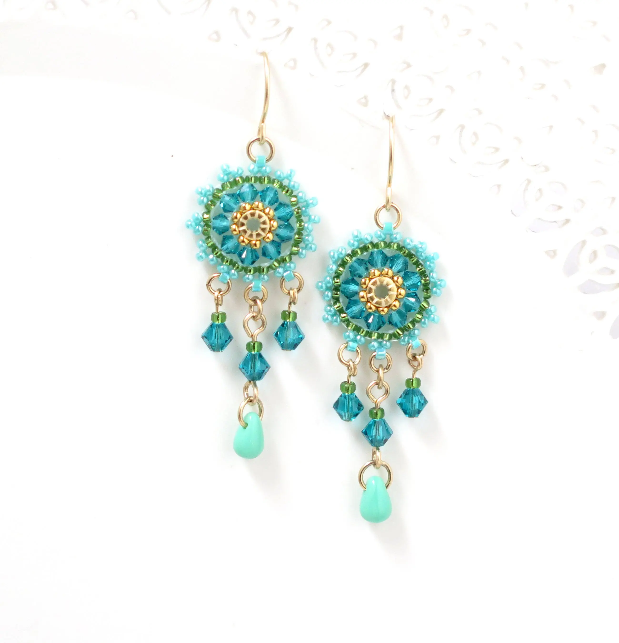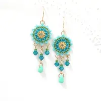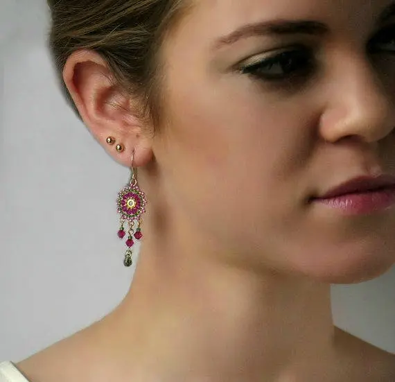 I created this romantic earrings by hand, using Swarovski 3-4mm beads, Miyuki round seed beads, Miyuki Delica beads and goldfilled 14k ear-wire
