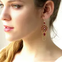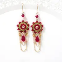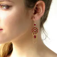 Statement long earrings women, Green and red chandelier earrings, Gold dangle chain earrings, Fashion earrings for women