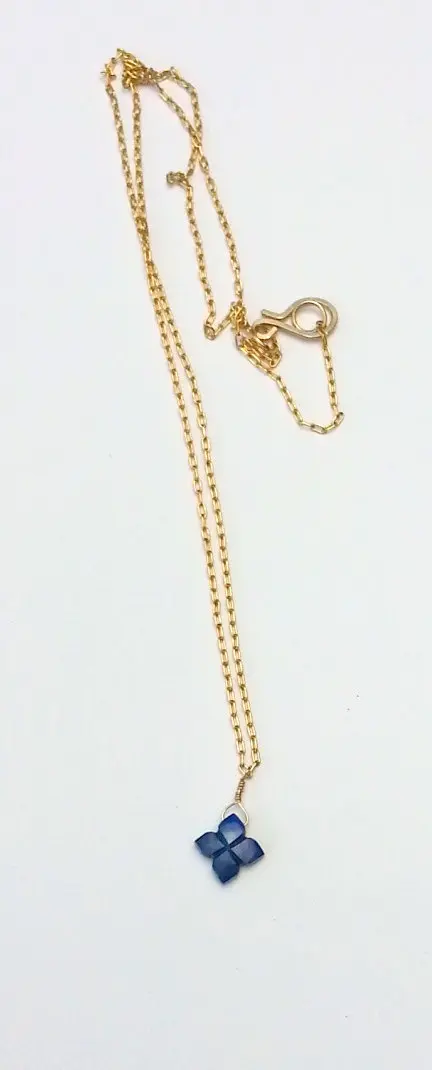 Vintage Delicate Necklace Gold fill 14K with Engraved Lapis Flower Navy blue