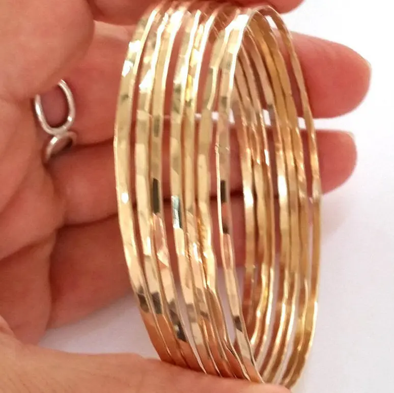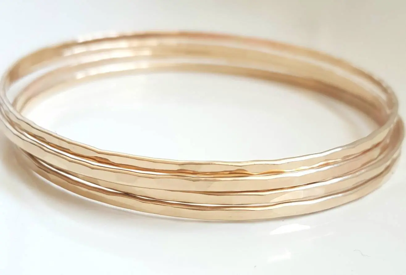 3mm Wide Gold Filled Bangle Bracelet - 14K Yellow Gold Filled - Simple Classic Everyday Jewelry - Stacking - Delicate Gold Hammered Bangles - Mother's Day - Gift For Her