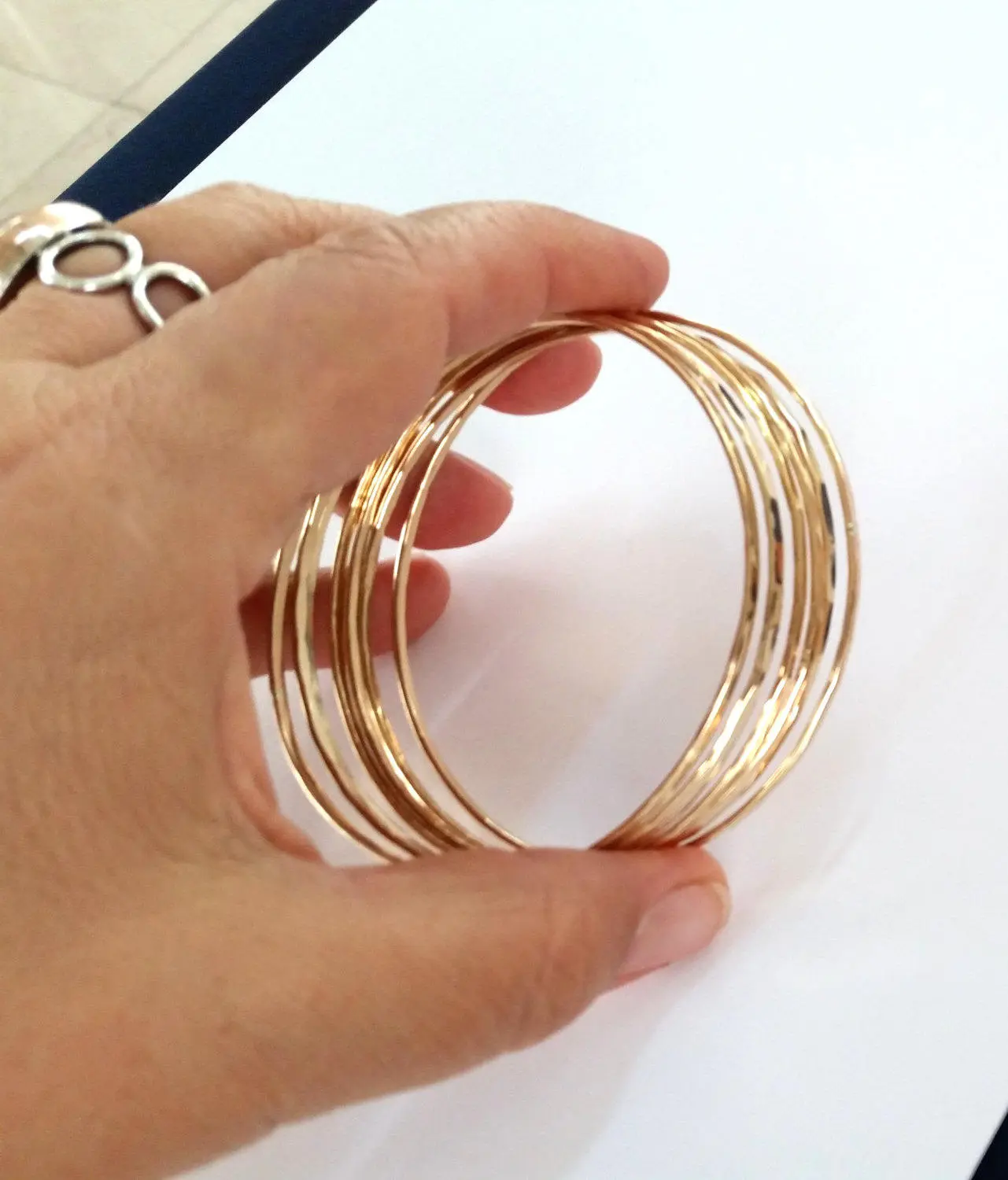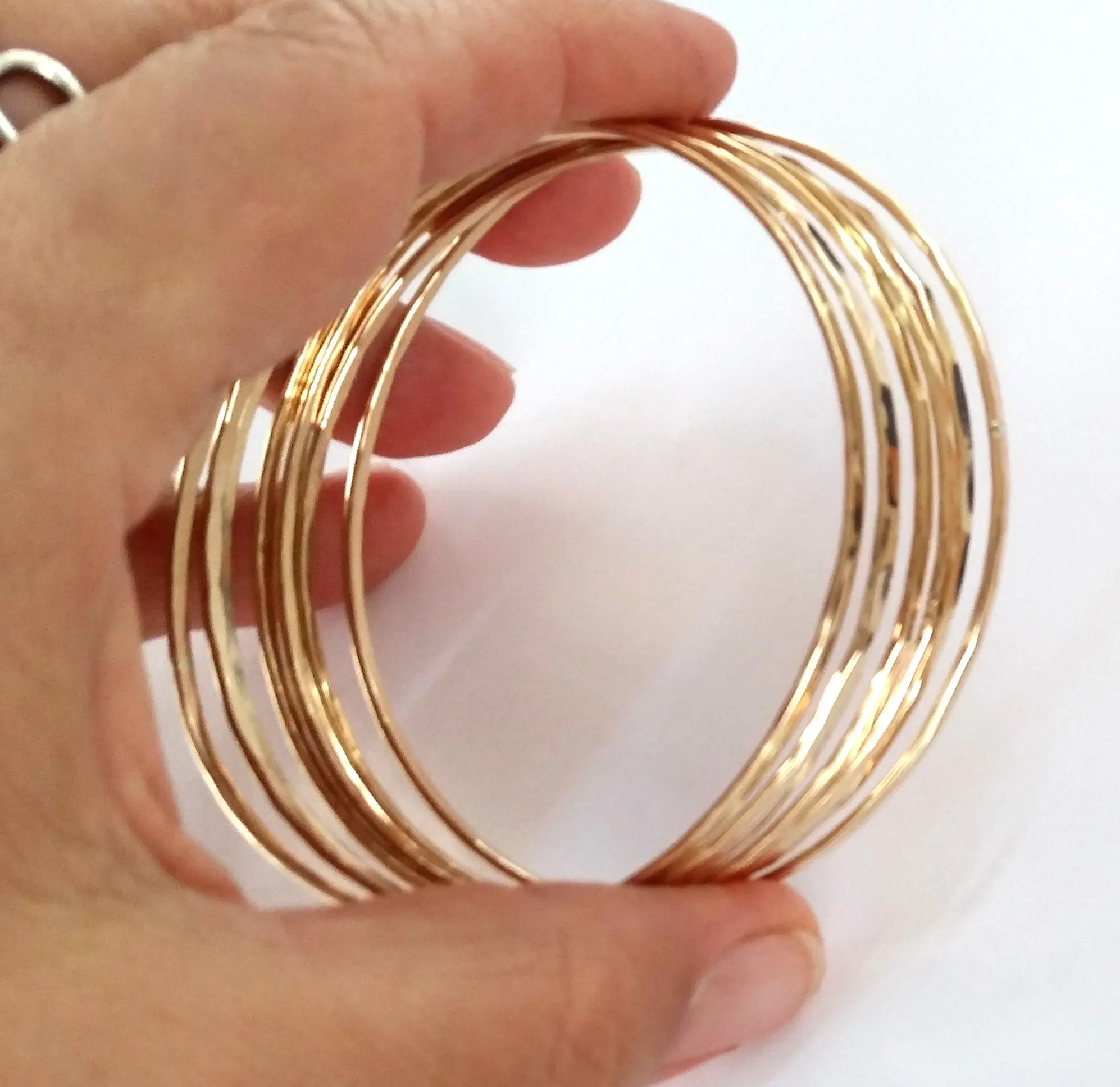 This is a lovely Minimalistic gold bangle. They are hand formed and hammered to give them a delicate texture, these are made with 14k gold filled wire.