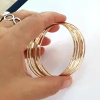 Set of 4 - Delicate 14k Gold Filled Wire. Hammered Bangles