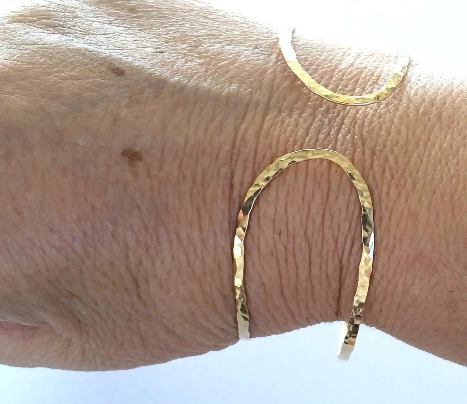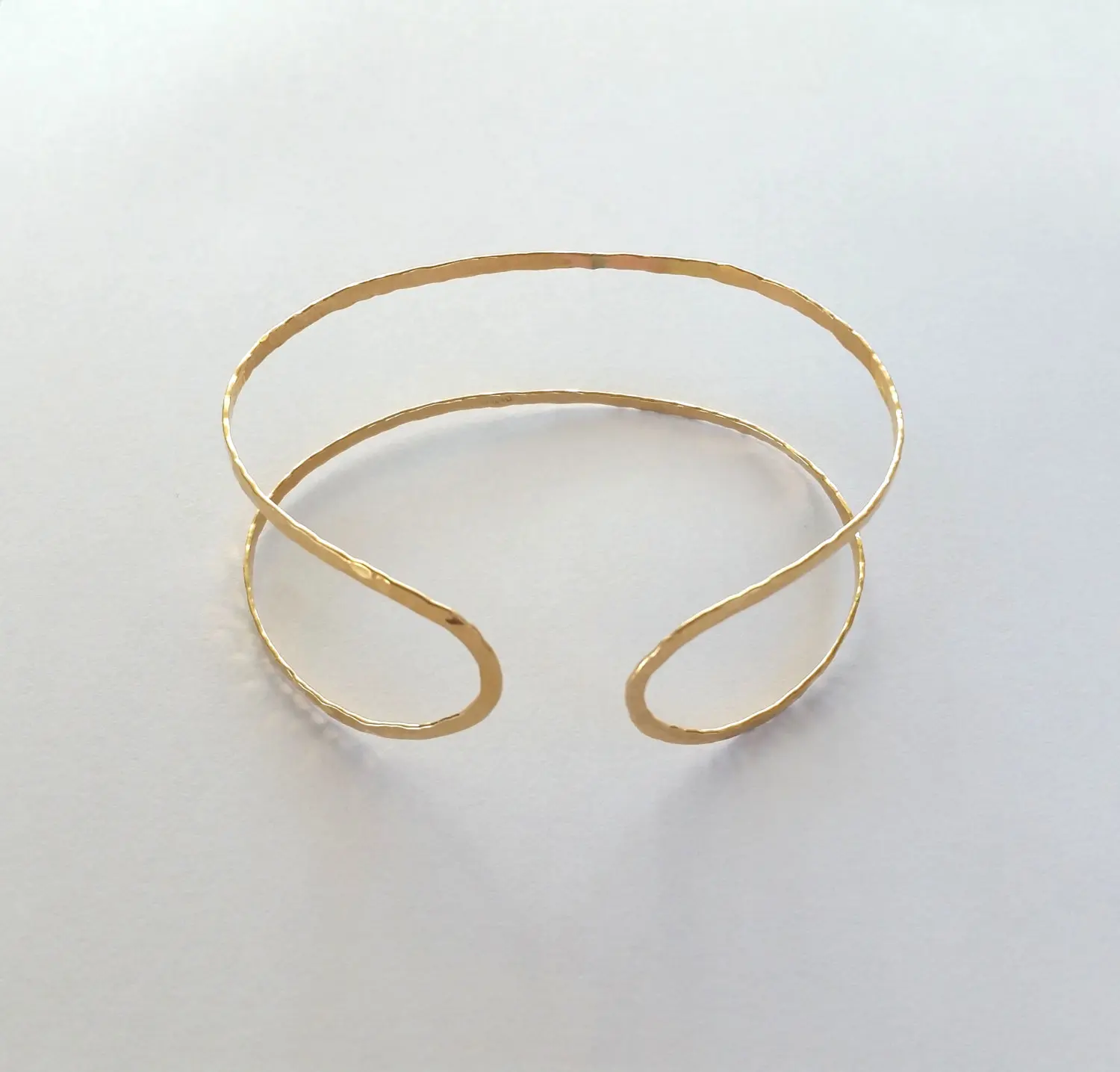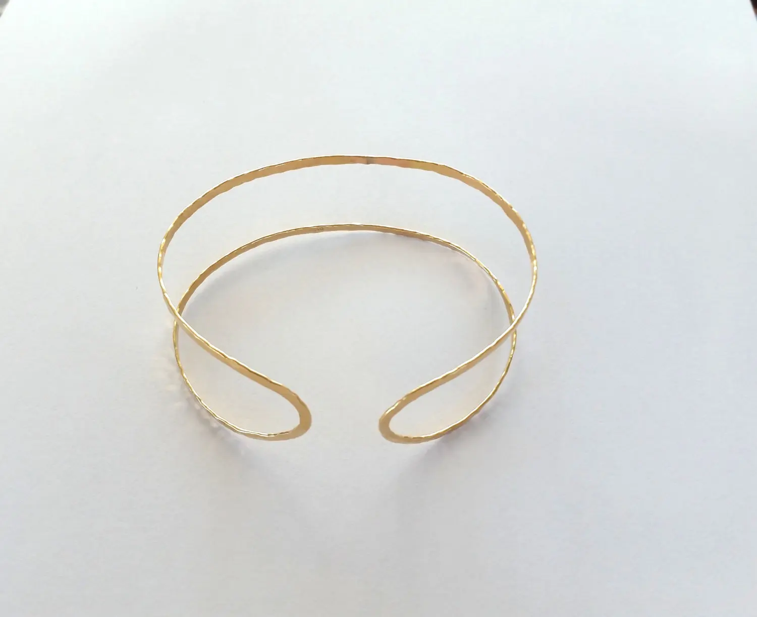 Gorgeous minimalist 14k gold filled hammered textured bangle bracelet, cuff very dainty and delicate. folded to create a contemporary look.