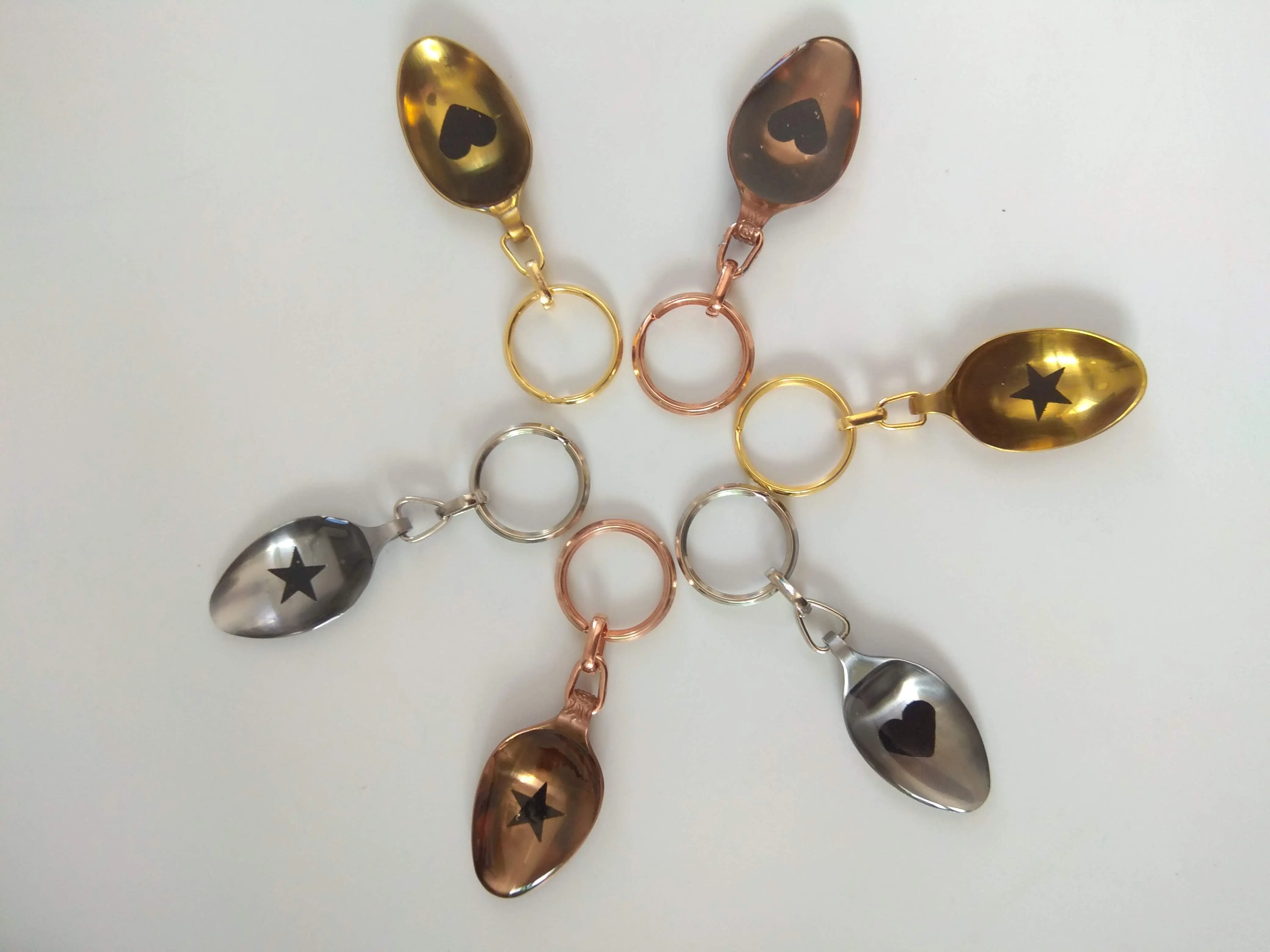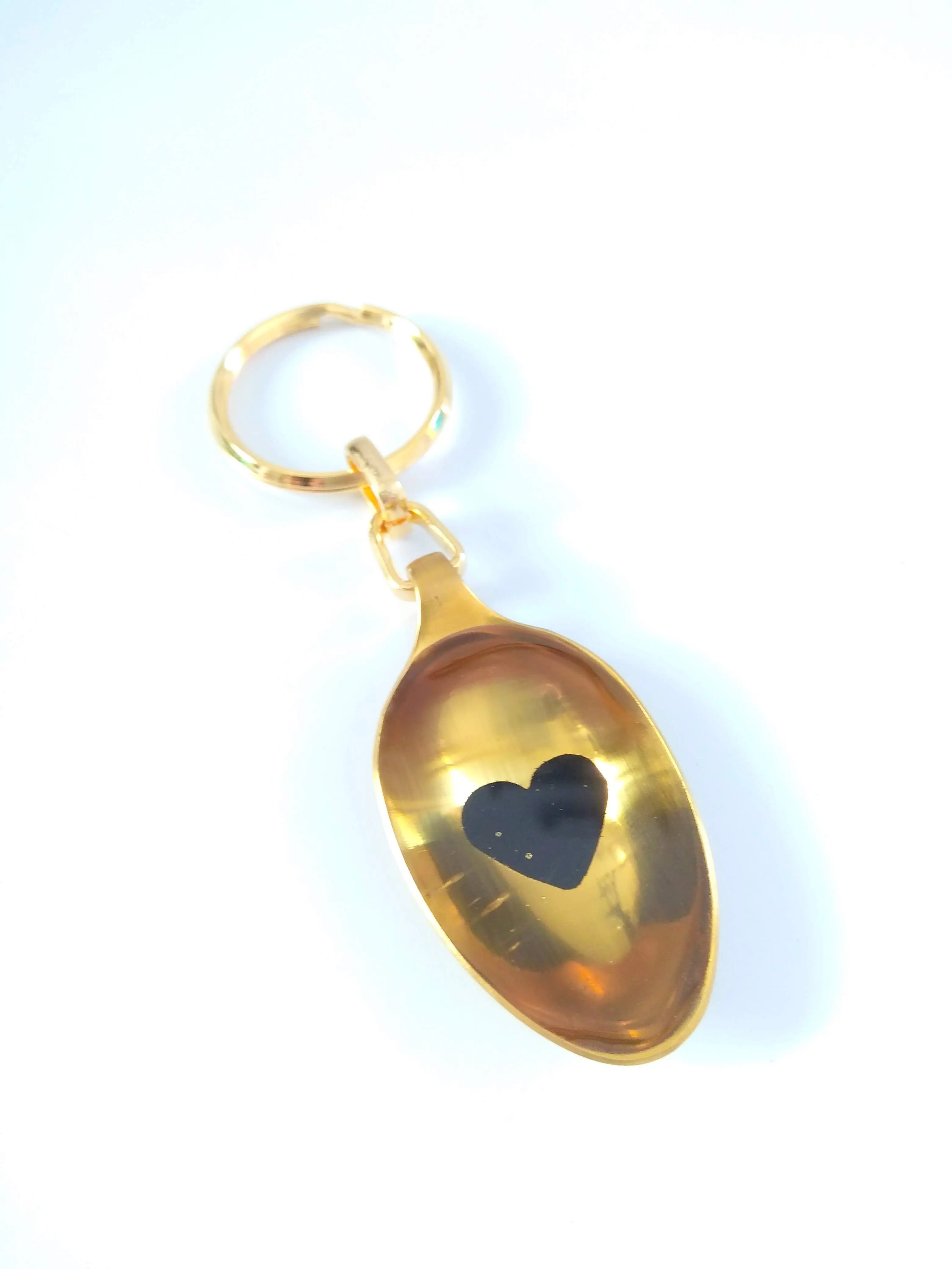 Golden Teaspoon keychain, teaspoon heart shape keyholder