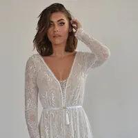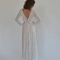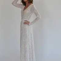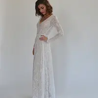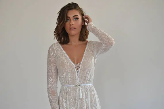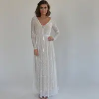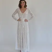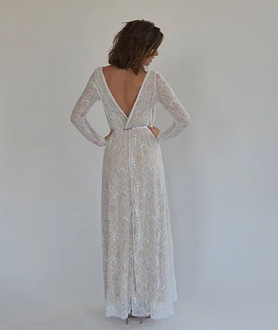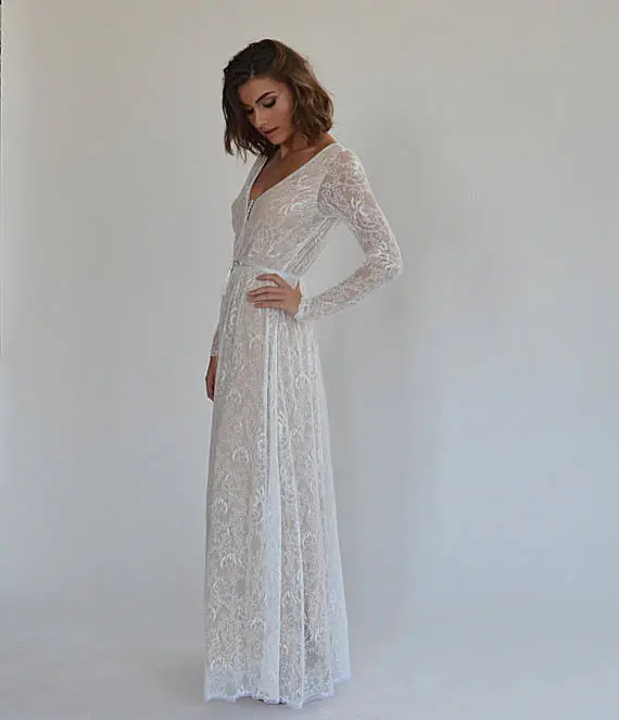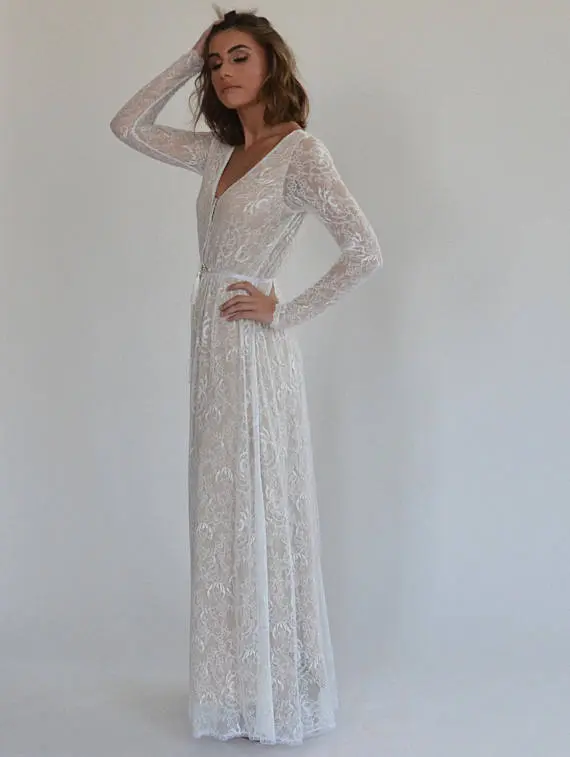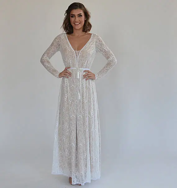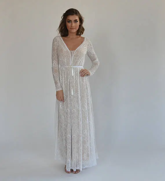 White lace dress floor length, boho wedding dress, long sleeve wedding dress .