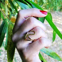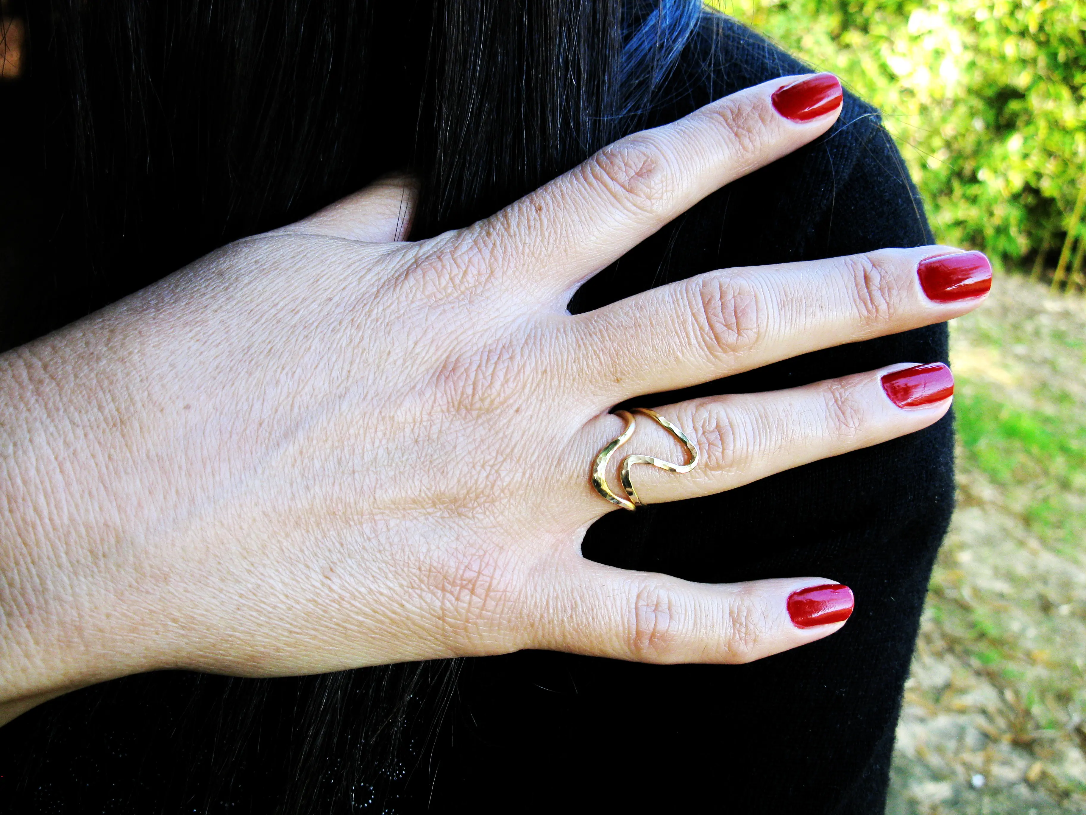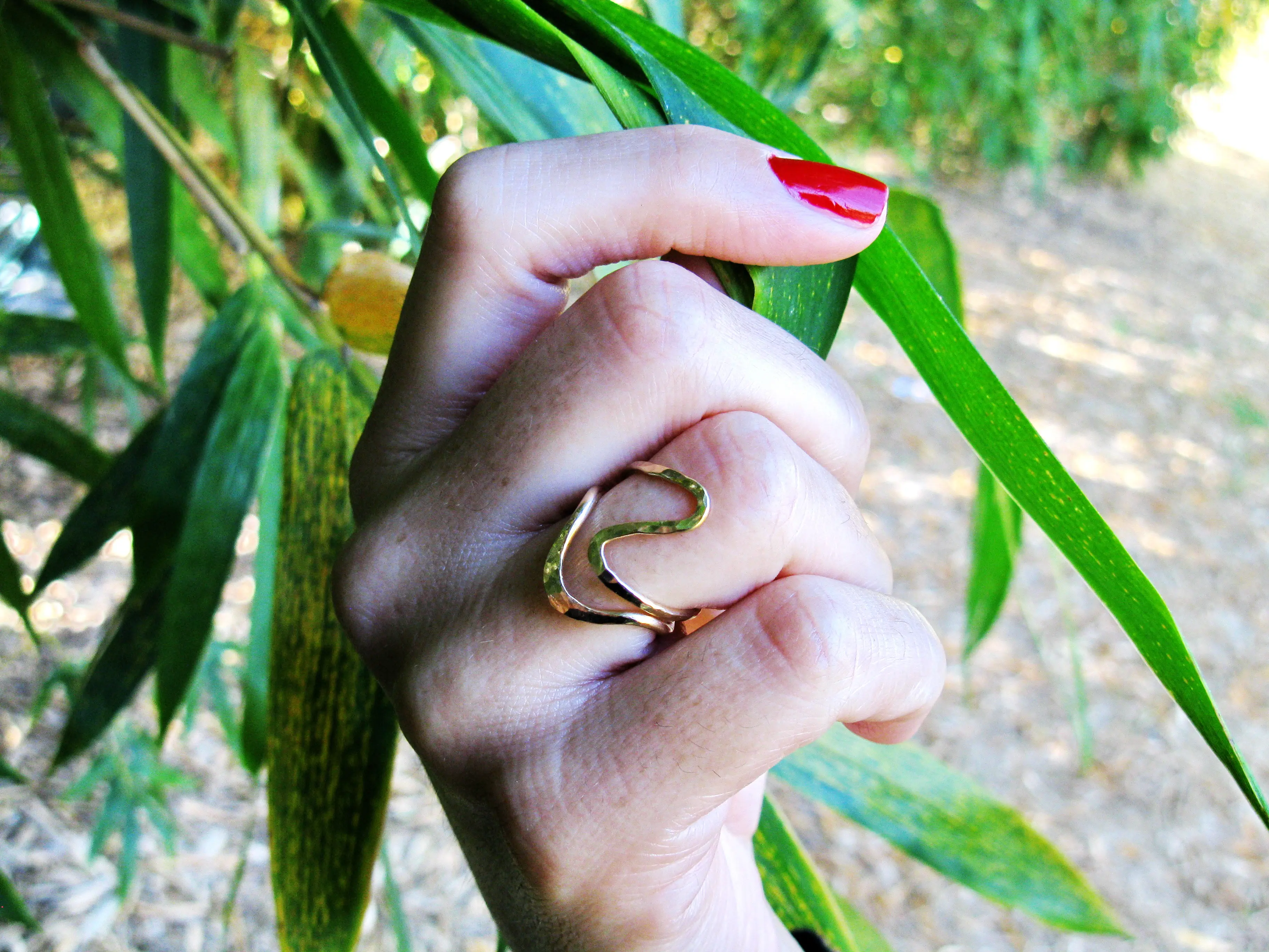 Beautiful Gold Curve set rings from hammered gold filled wire and they are adjustable, can be stacking or individually, they are handmade by me in my little studio, and is made to order in your finger size. I use 100% the best quality materials for all my jewelry! I am always trying to do the best work for your satisfaction :) Each piece is individually shaped and hammered so there will be very slight variations.