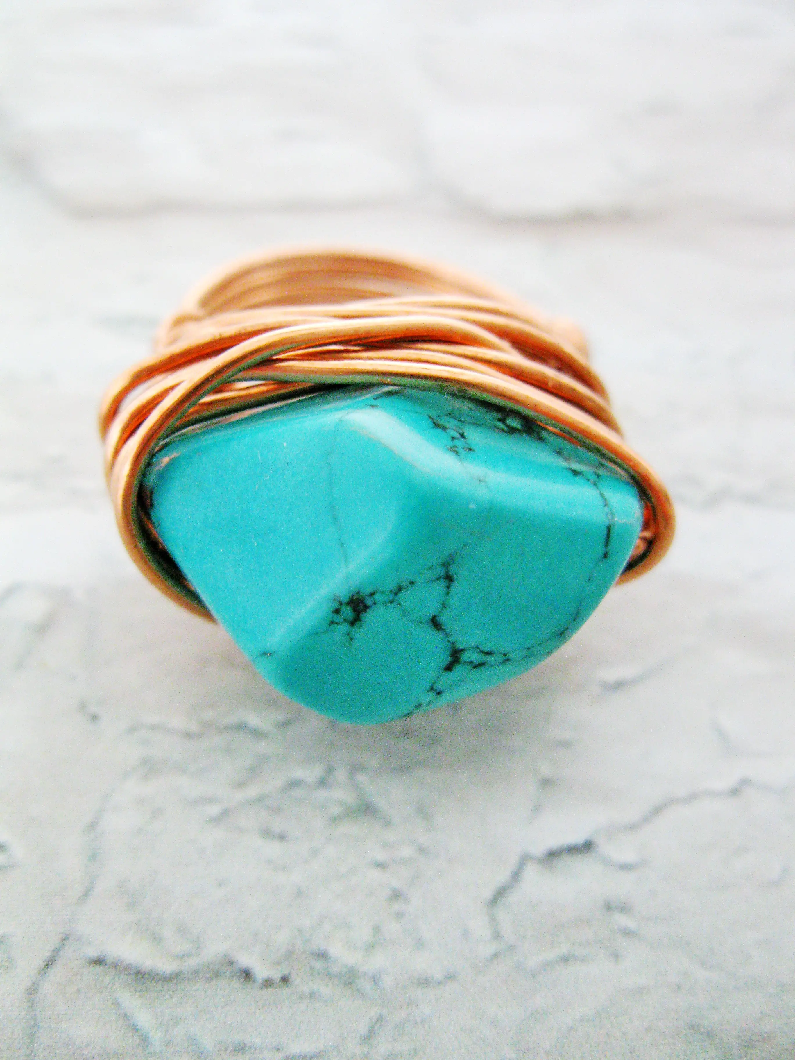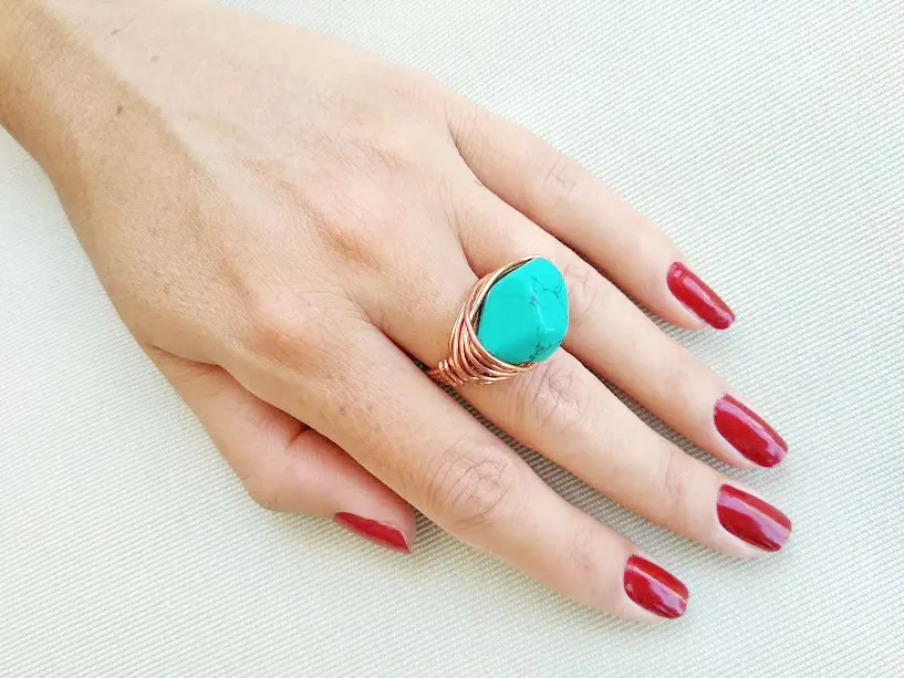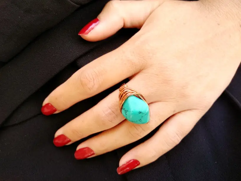 This unique Ring made by myself with love and dedication it is a part of my new collection and made from copper wire and Turquoise Howlite stone, will compliment your outfit and enhance your appearance on every occasion. Purchase one as a gift to a loved one or customize one for yourself.