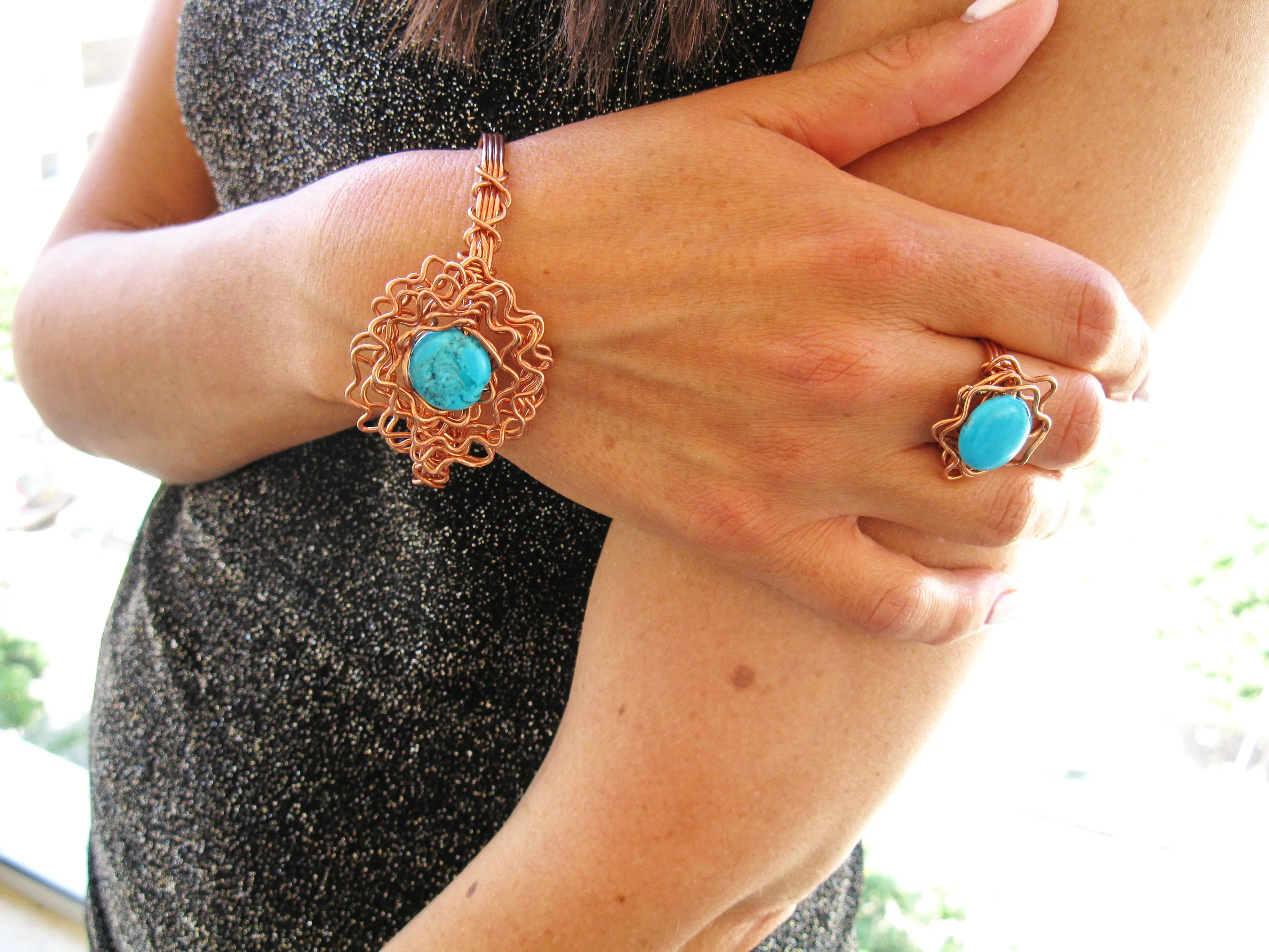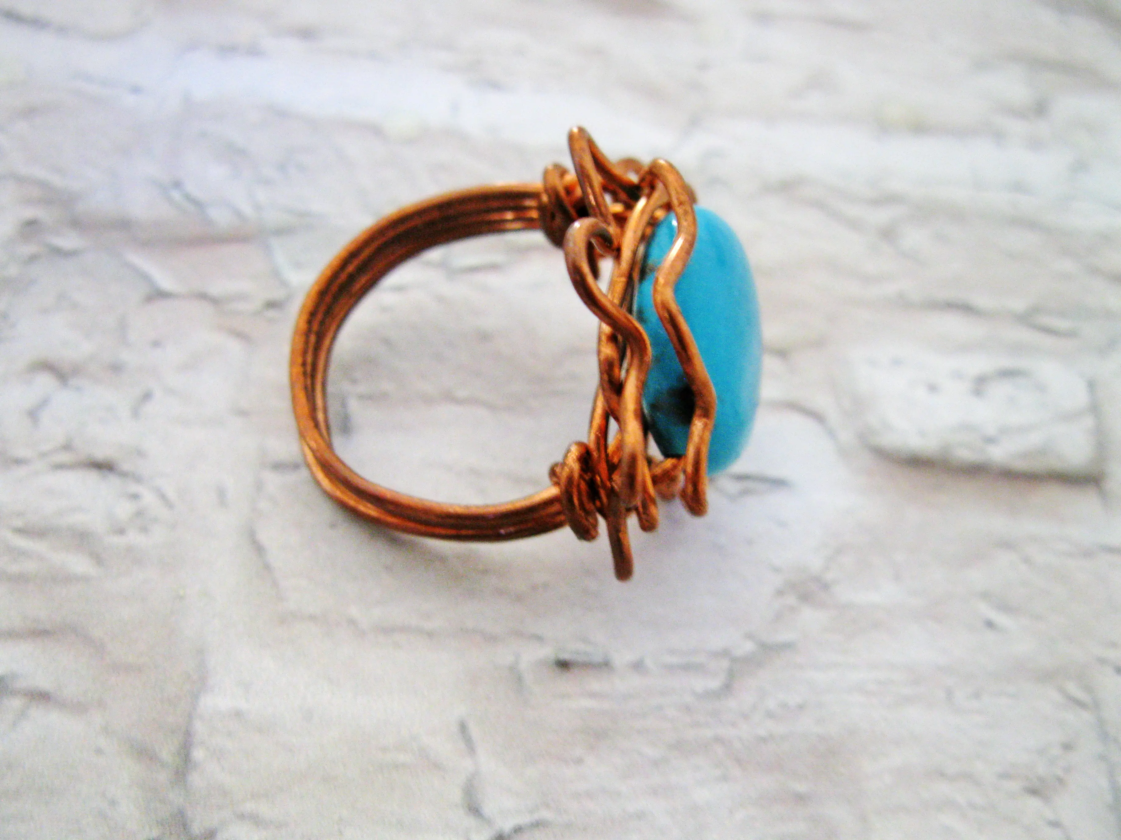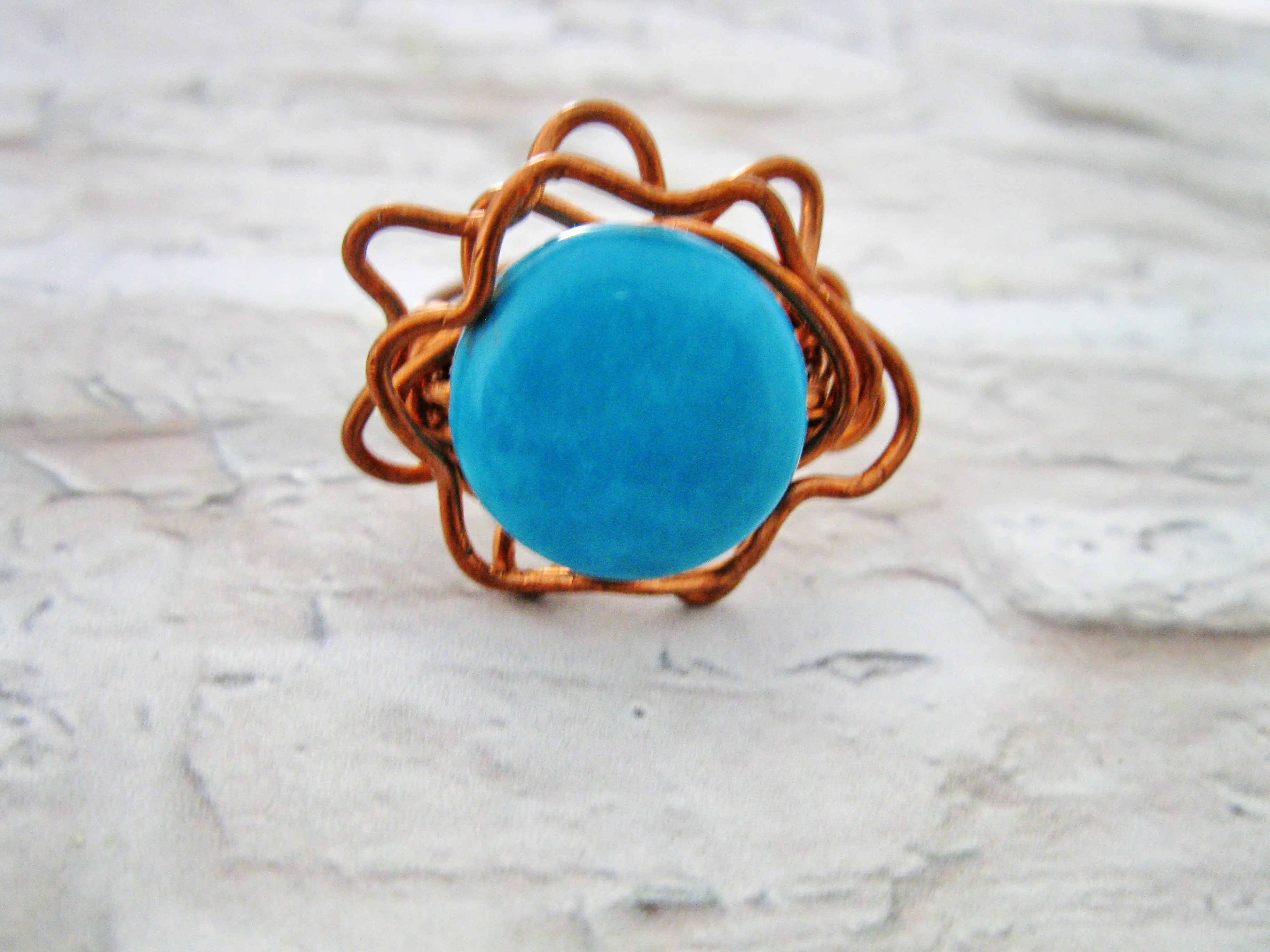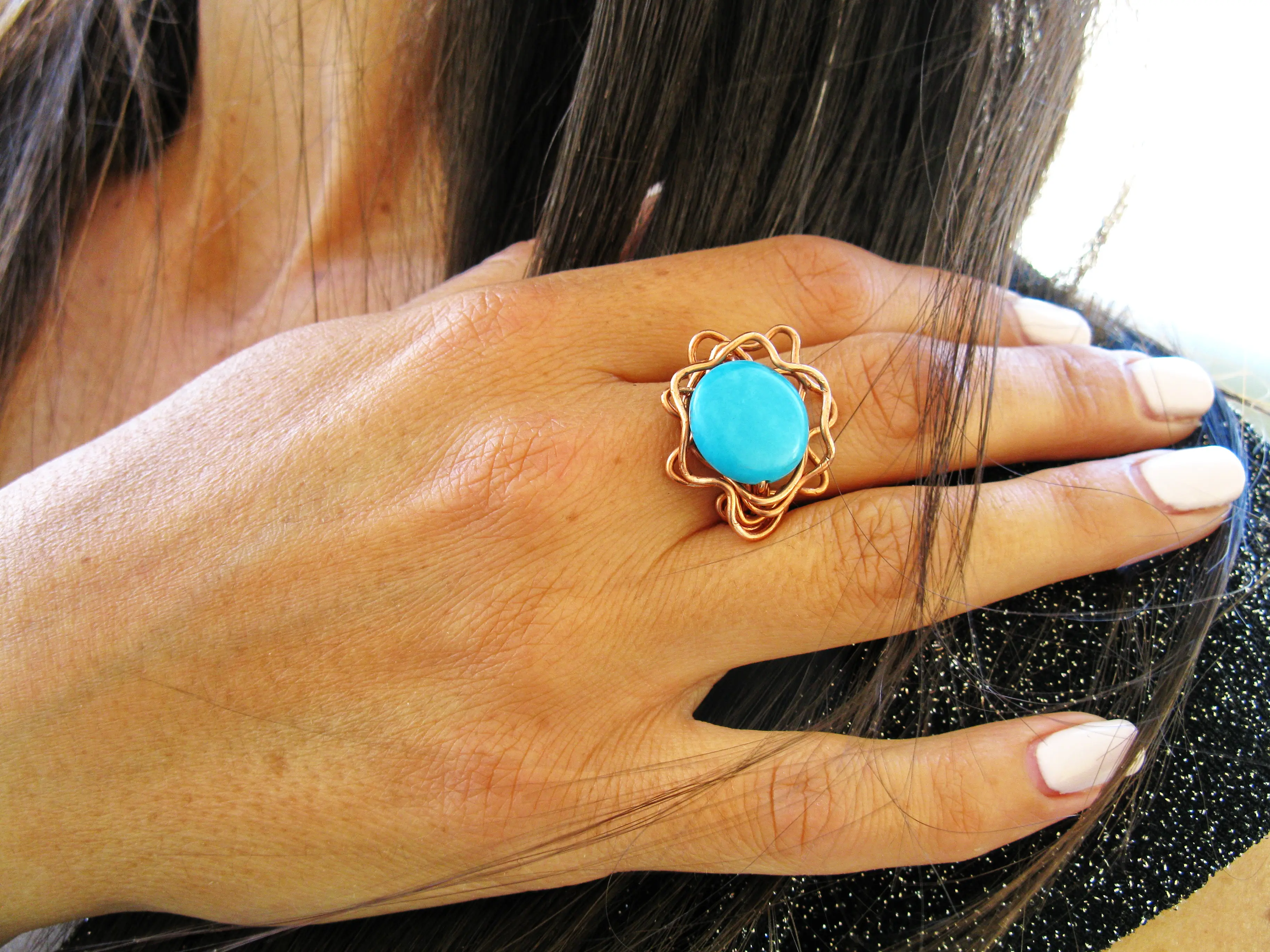 Charming flower turquoise Howlite Ring, this unique Ring made by myself with love and dedication it is a part of my new collection and made from copper wire and Howlite stone, will compliment your outfit and enhance your sophisticated look on every occasion.