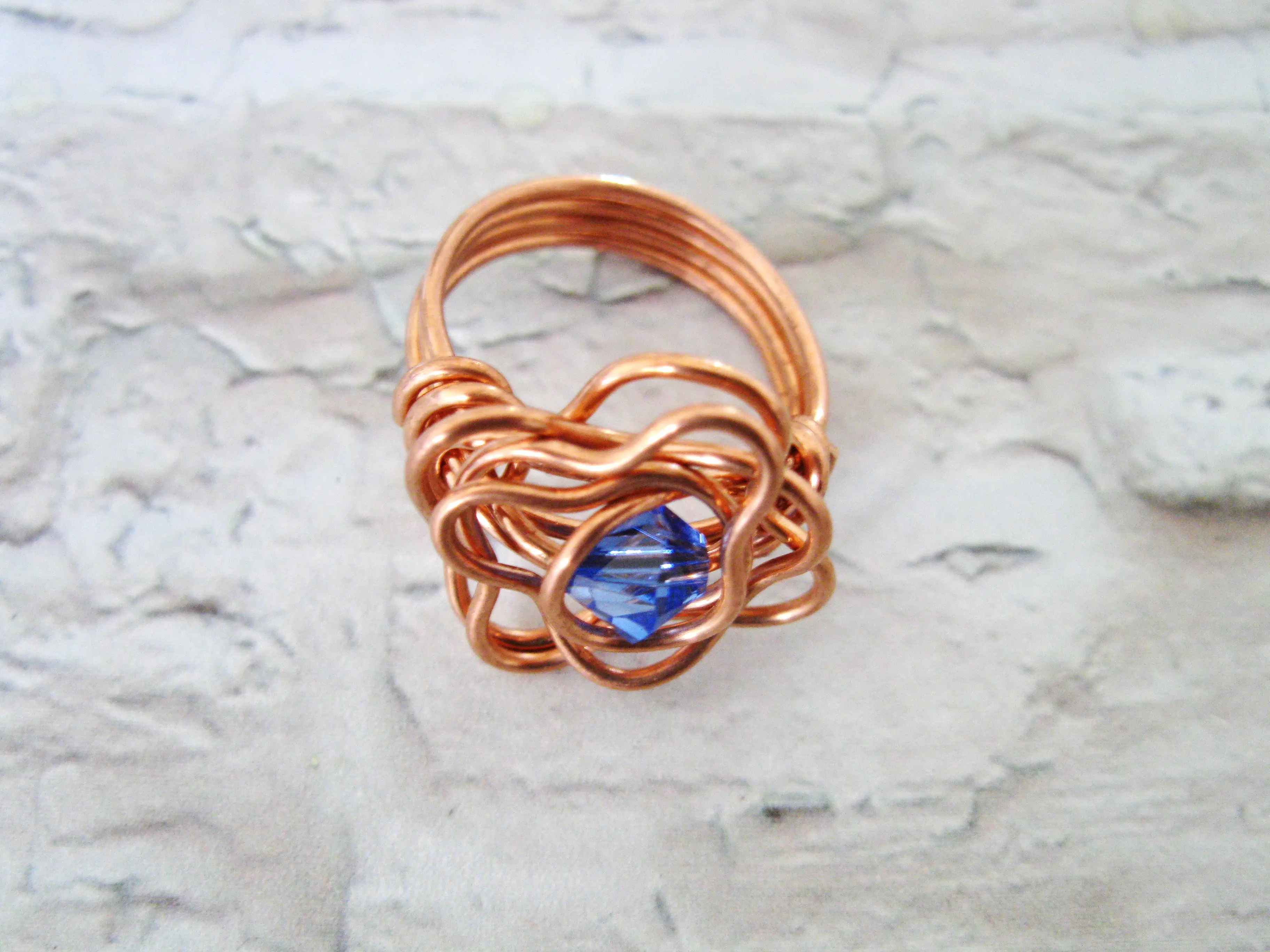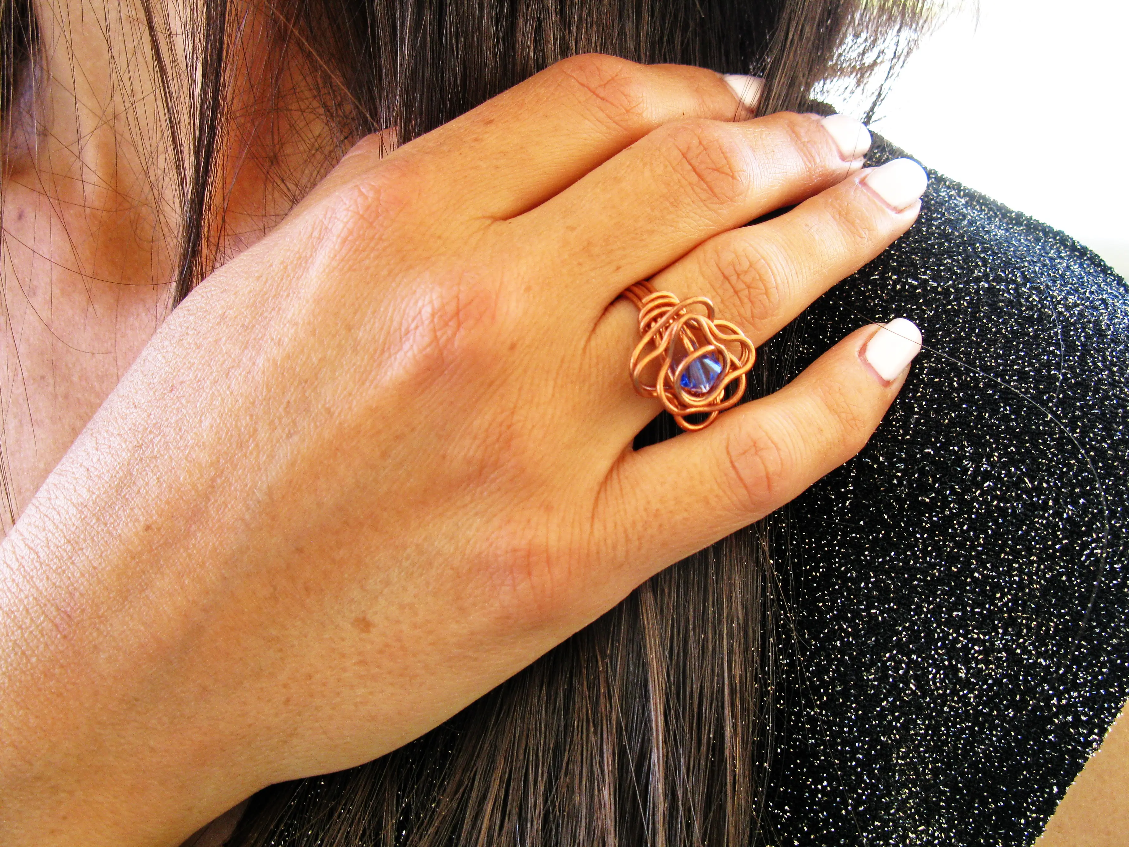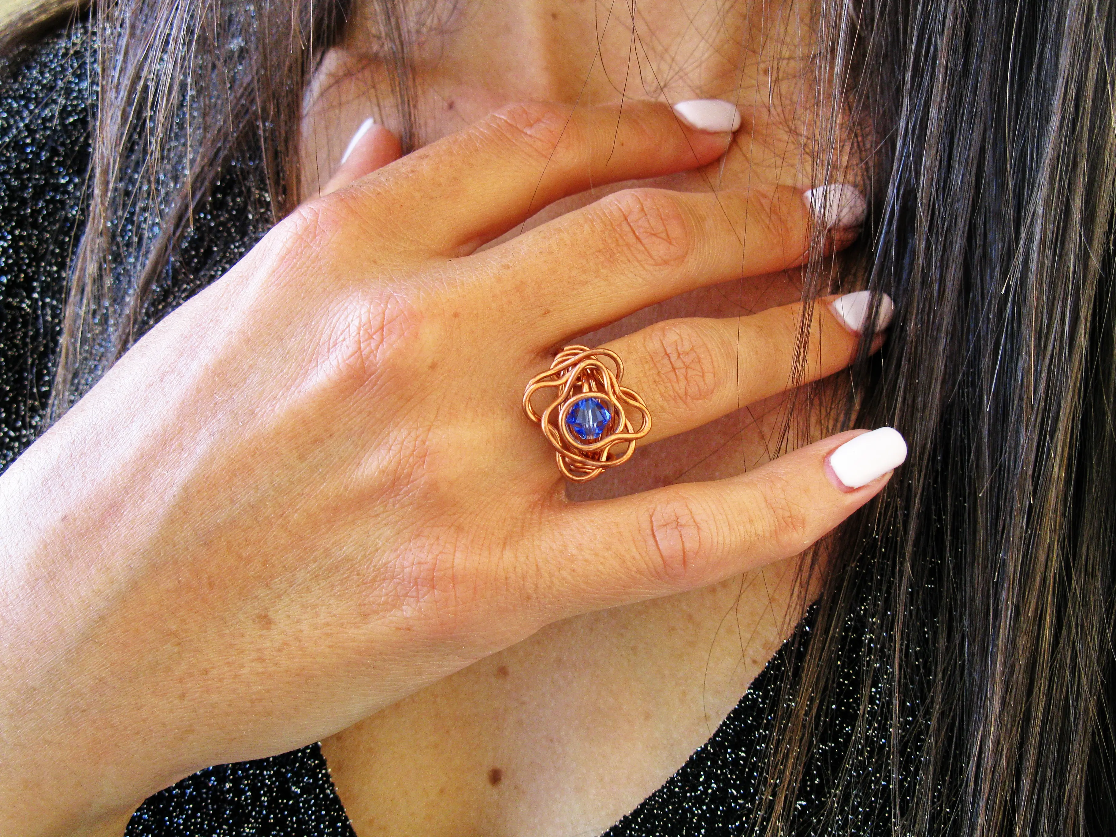 Beautiful flower ring made from copper wire and Sapphire Swarovski crystal birthstone of your choose, is hand made by me with love and care it is a part of my new collection, and is made to order in your finger size, compliment your outfit and enhance your appearance on every occasion. Purchase one as a gift to a loved one or customize one for yourself.