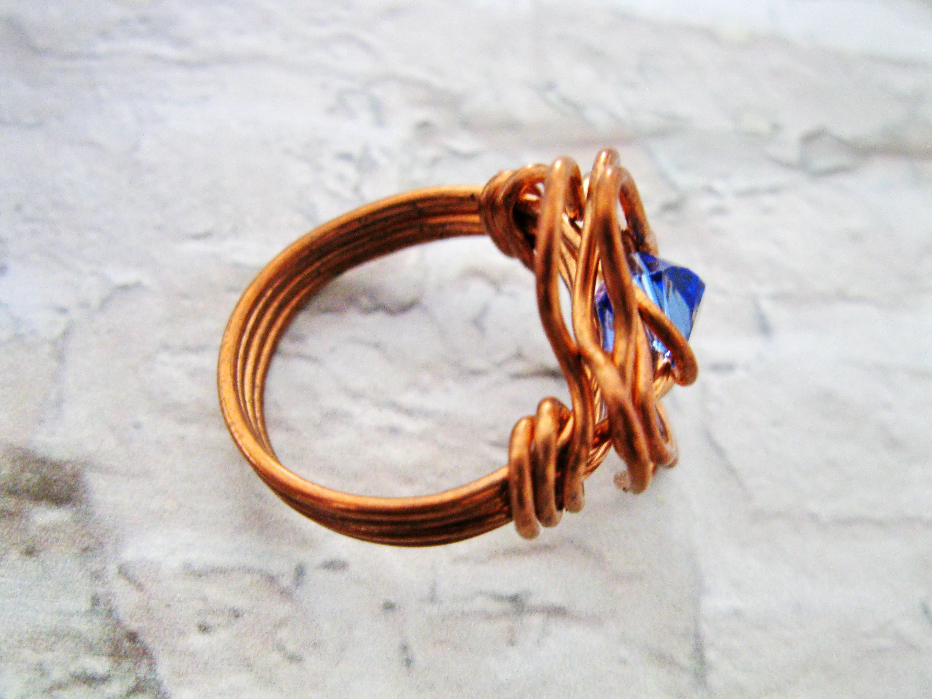 Copper ring, Birthday ring, Birthstone ring, Sapphire ring, Wire wrapped ring, Mother's day gift, Unique Ring,