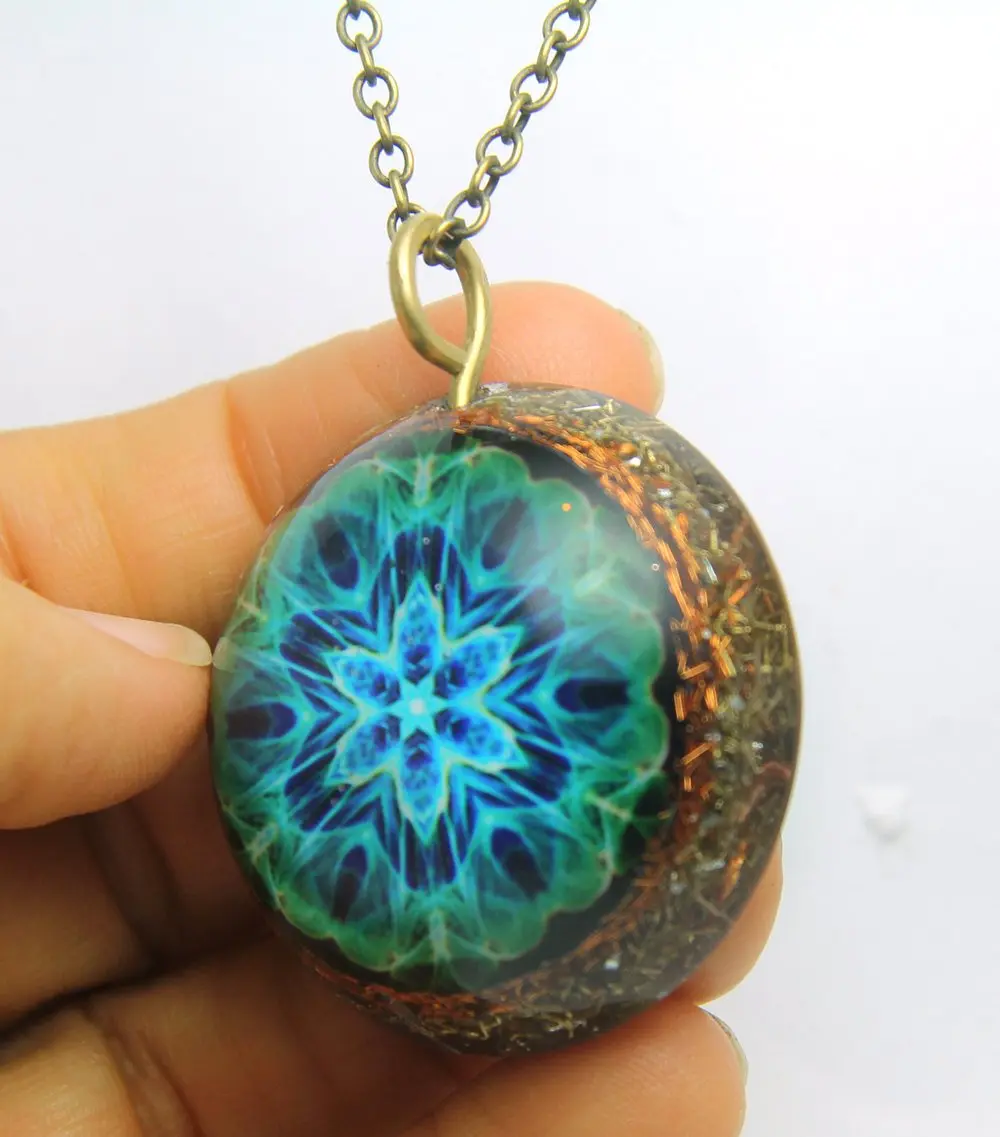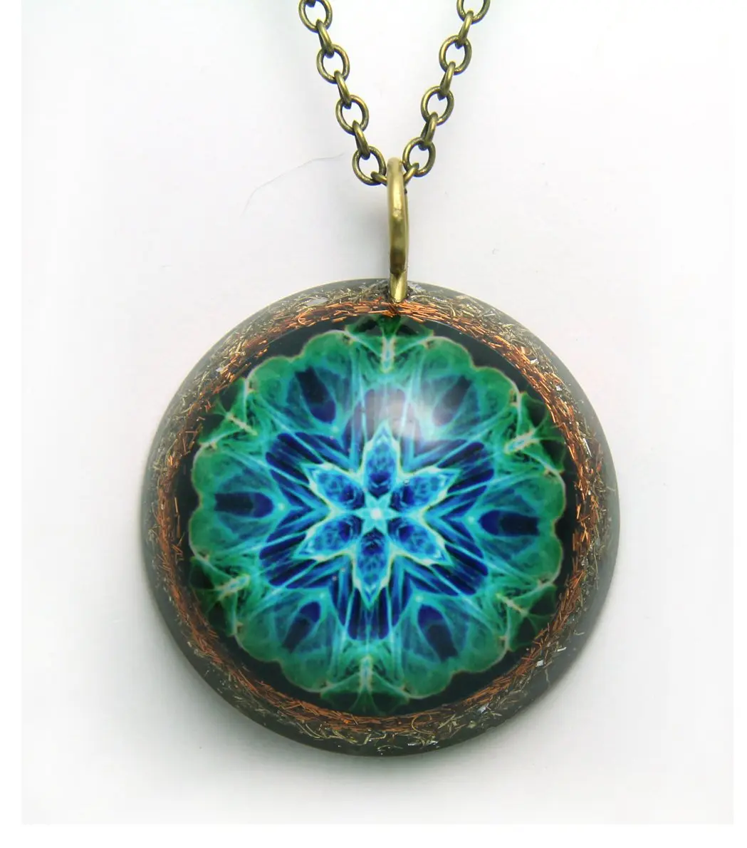 free shipping, Water Glow Mandala, Gift, Orgone Pedant, Orgone Necklace, Orgone Jewlry , harmonizing jewelry, Mandala orgone energy pendant, EMF protection