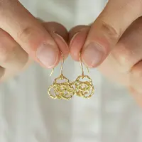 Textured gold link earrings,18k gold dangle hoops,Circle small earrings,Gold hoops, Drop earrings,Dainty earrings,Gift for her, Handmade