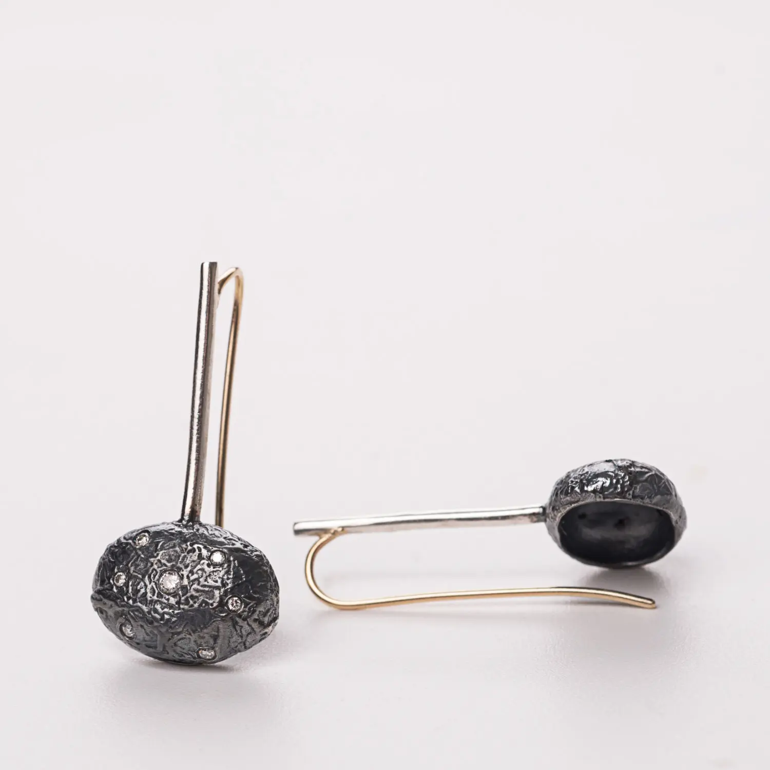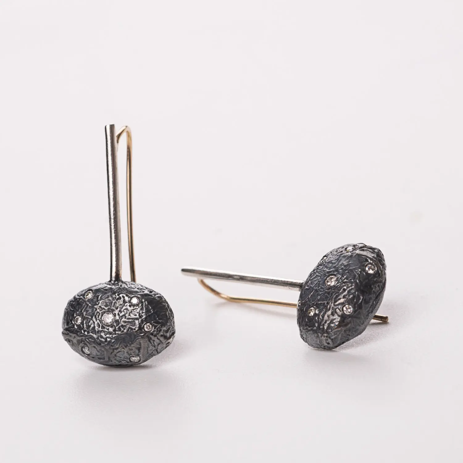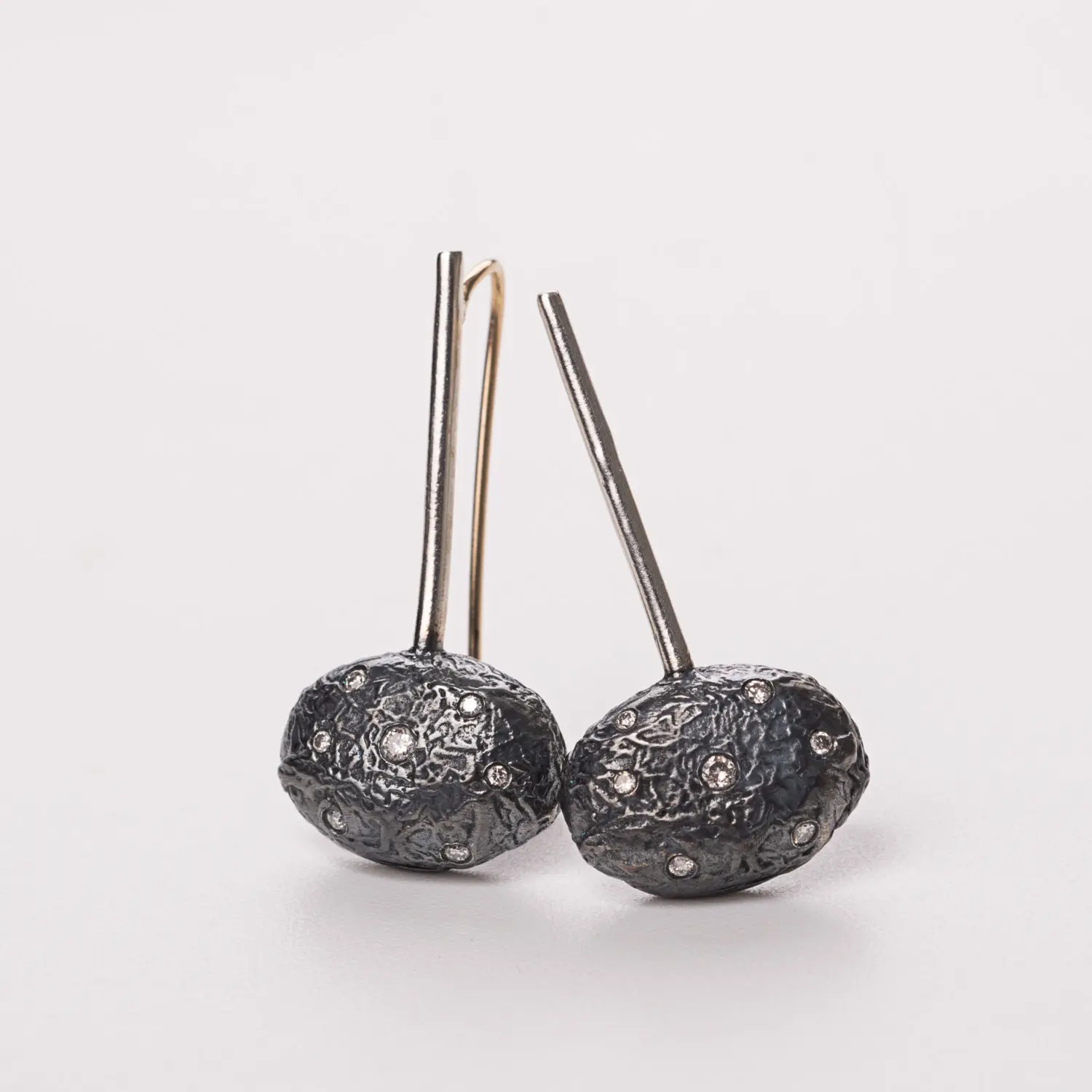 Dangel oxidized silver earrings set with tiny diamonds(7diamonds each earring).