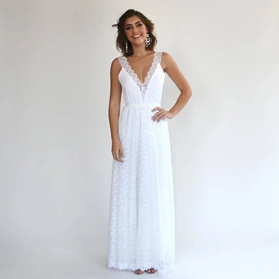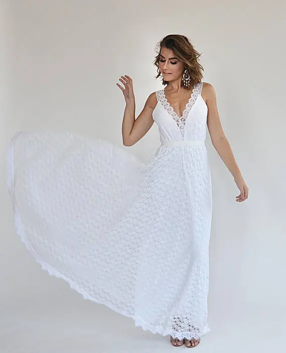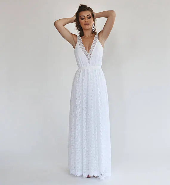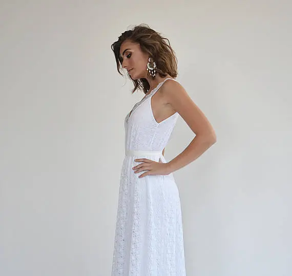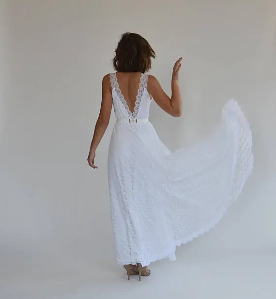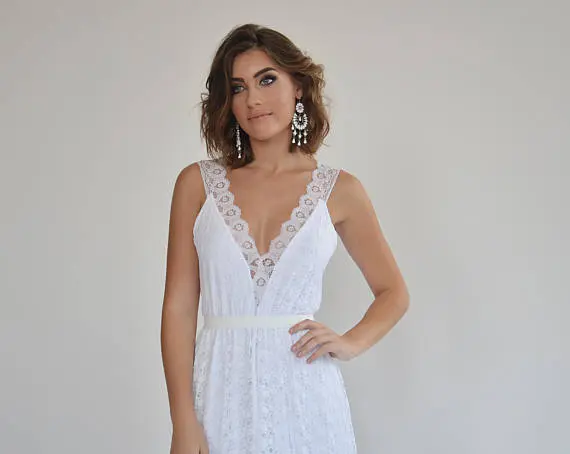 Lace wedding dress , this amazing white bohemian wedding lace dress, timeless and effortless for the laid back bride, all over lace wedding dress.