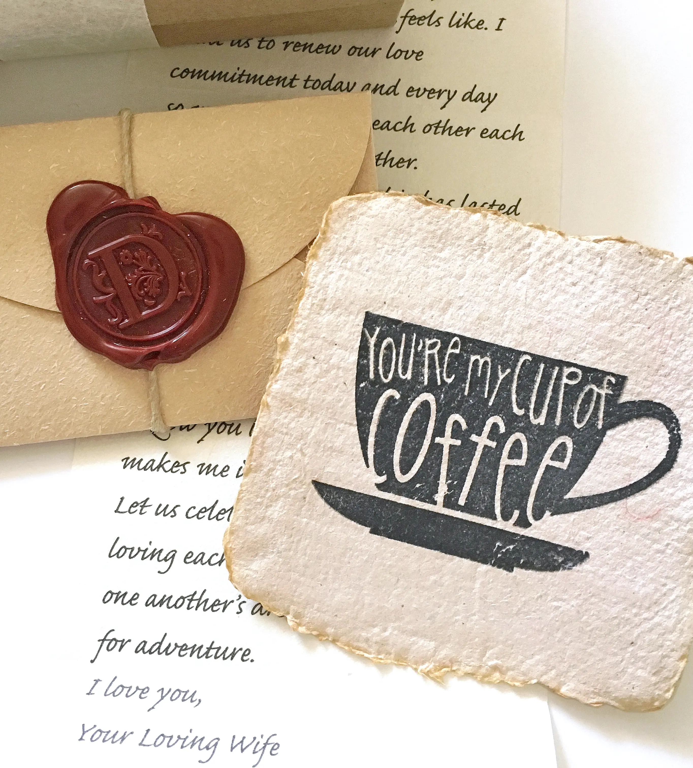 Your personalized love note sealed in an envelope with a wax stamp