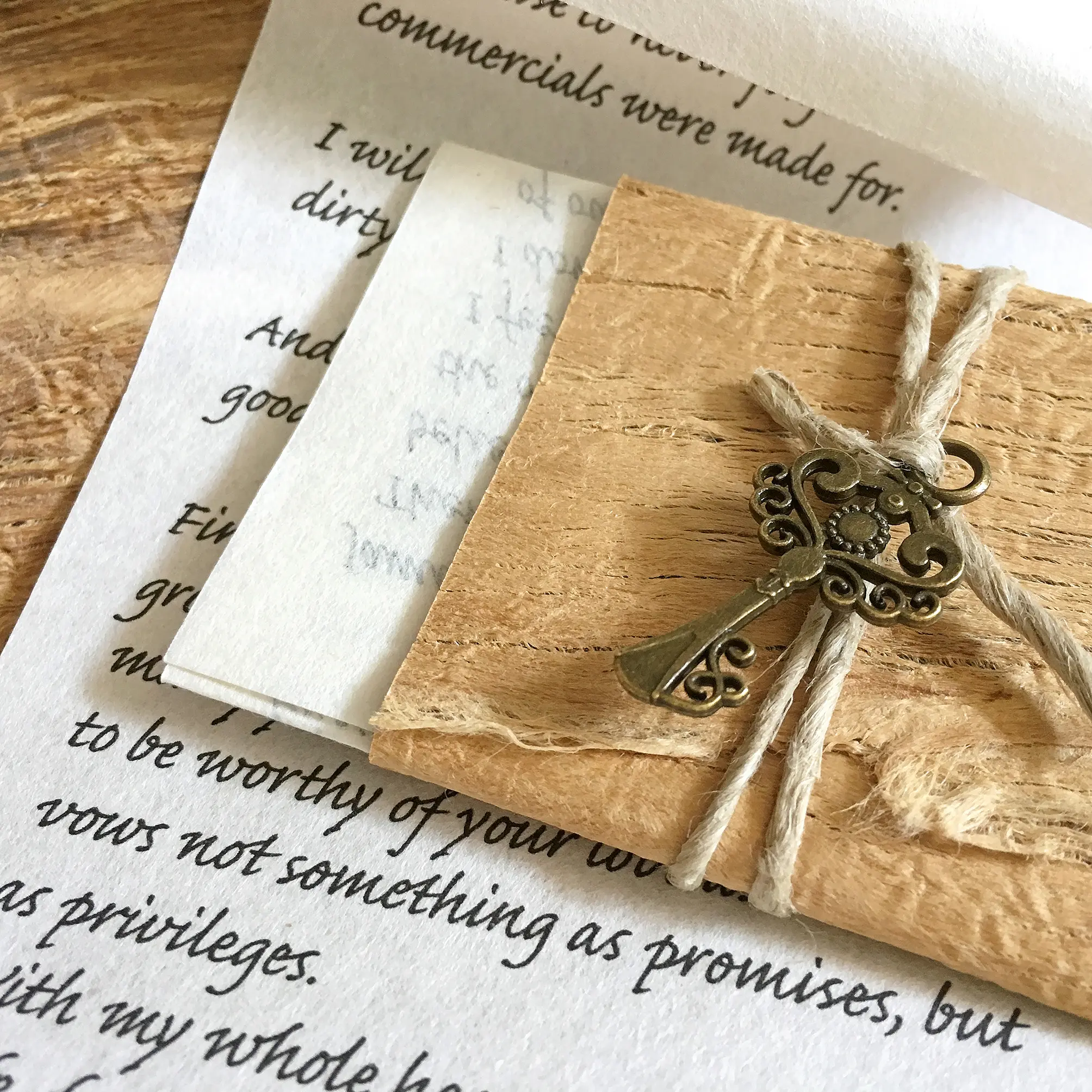 Personalized love note (your text) and "Key to my heart" - a tiny vintage style key