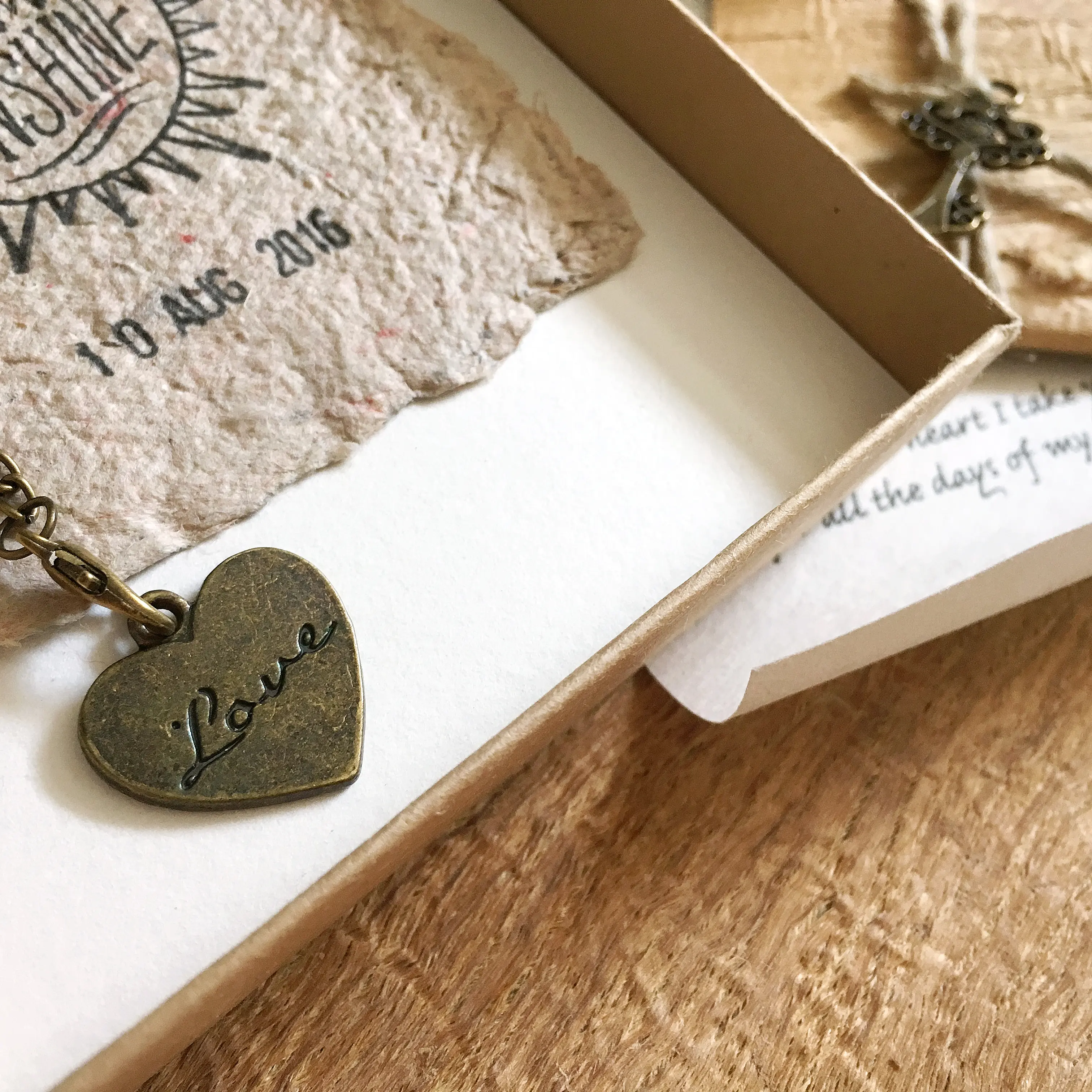 Share a special sentiment with your beloved, with this Treasure Box of Love, on your 1st Anniversary. A perfect romantic gift from Be Loving. The box is sealed with a personalized wax seal to complete the sentiment. Your recipient will be impressed and it will surely be cherished.