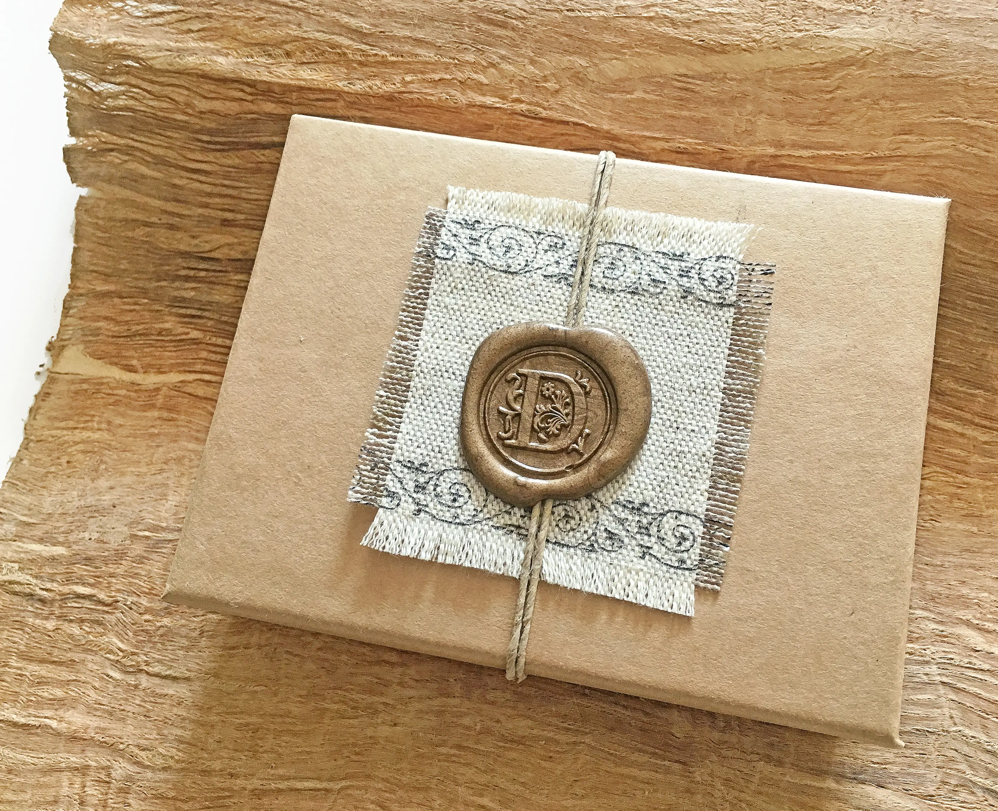 Kraft box sealed with a personalized wax stamp