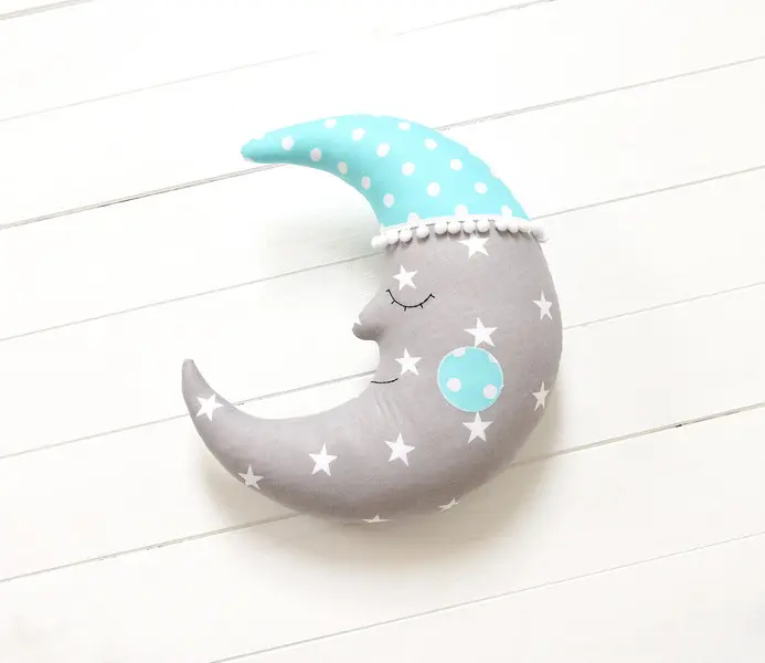 • Happy moon in blue Nursery / Kids Rooms Pillow
