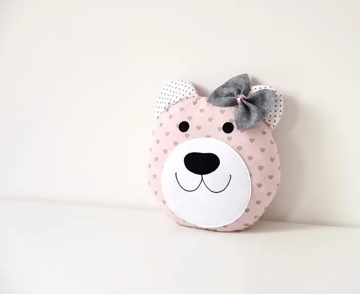 Happy teddy bear in grey and pail pink Nursery / Kids Rooms Pillow
