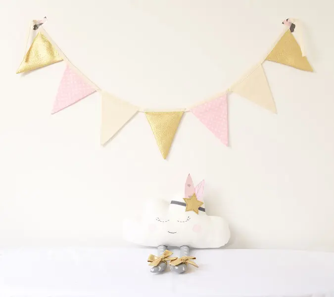 Seven flags Cotton Fabric Bunting Birthday Party Decoration - in gold and pink ! If you require customization please contact me