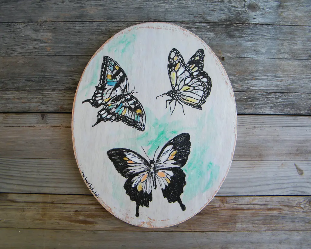 Oval Wall Art, Butterflies Wall Sign, Butterfly Print, Bedroom Decor, Rustic wood sign, Natural Wall Art, Round Wall Hanging