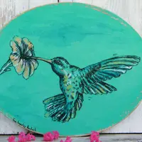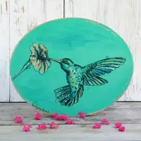 Add a rustic touch to your home with this unique hummingbird oval wall sign.